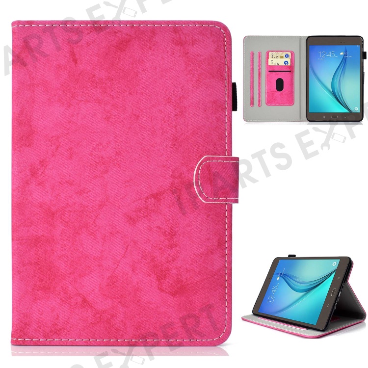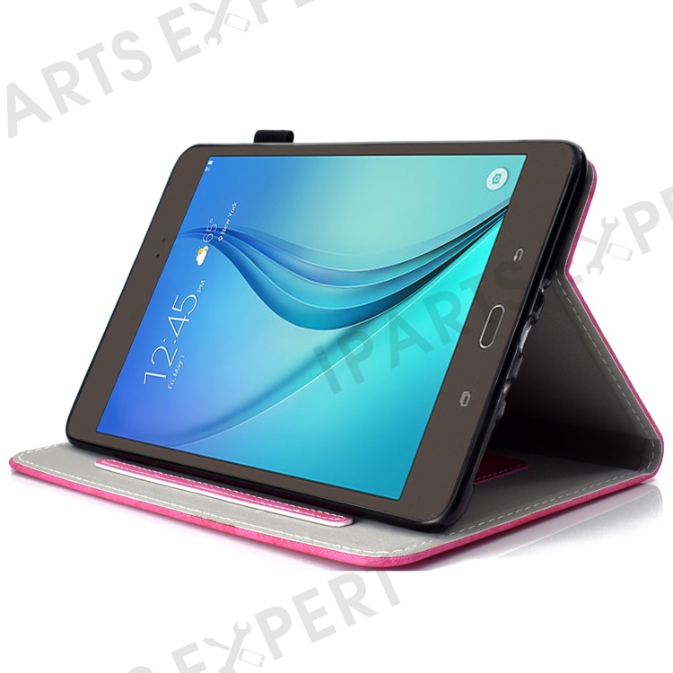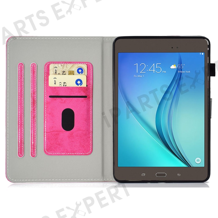 For Samsung Galaxy Tab A 8.0 SM-T350 / T355C (2015) Cloth Texture PU Leather Tablet Case Anti-drop Stand Cover with Card Holder - Rose