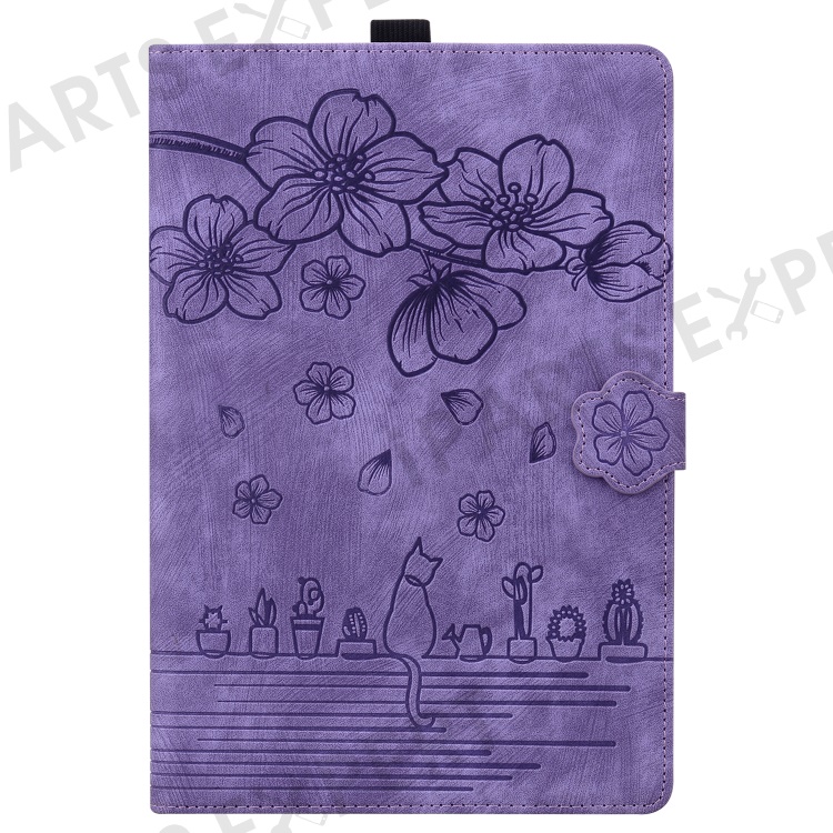 For Samsung Galaxy Tab A8 10.5 (2021) / (2022) Card Holder Tablet Leather Case Imprinted Flower Cat Stand Tablet Cover - Purple