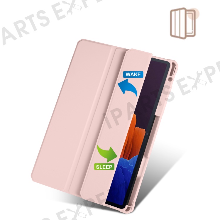 For Samsung Galaxy Tab S8 Ultra Trifold Stand Tablet Case PU Leather + TPU + Acrylic Smart Cover - Pink