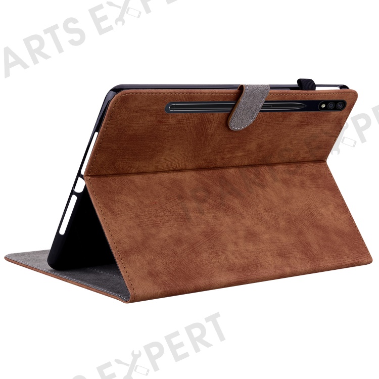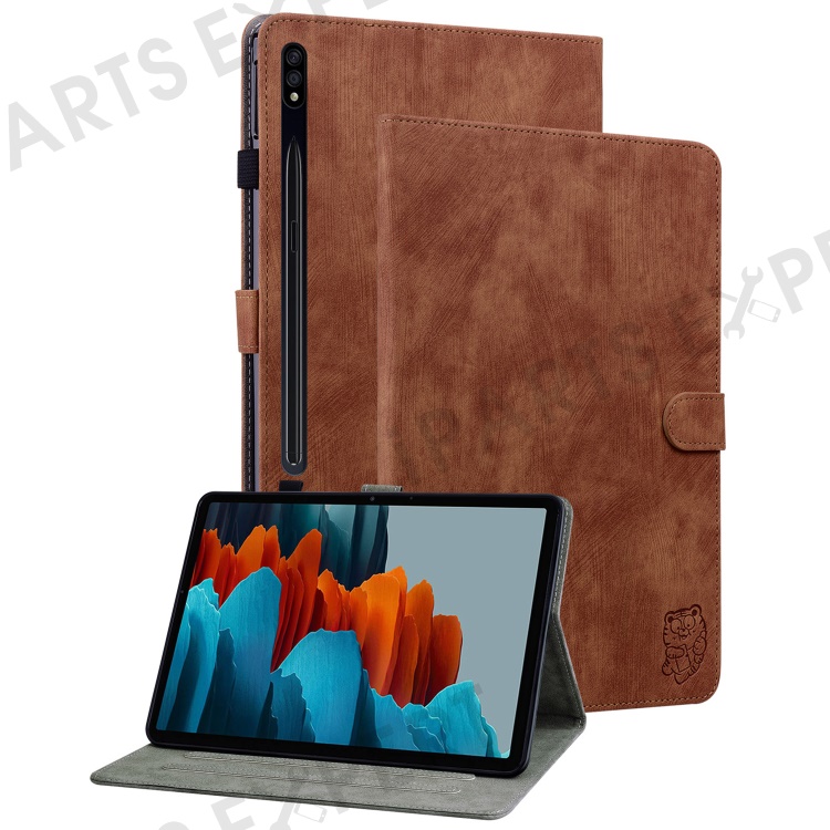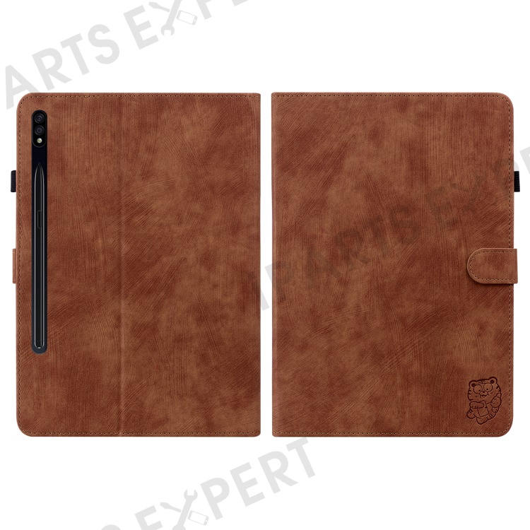 For Samsung Galaxy Tab S10+ / S9+ Imprinted Cute Tiger Pattern Tablet Case PU Leather Card Holder Stand Cover - Brown