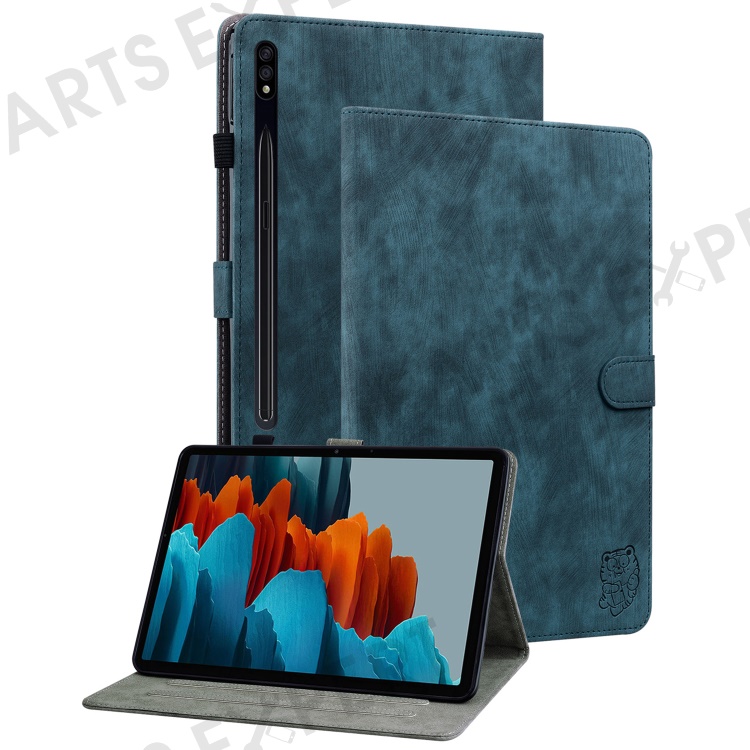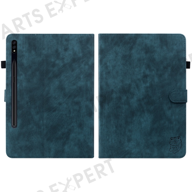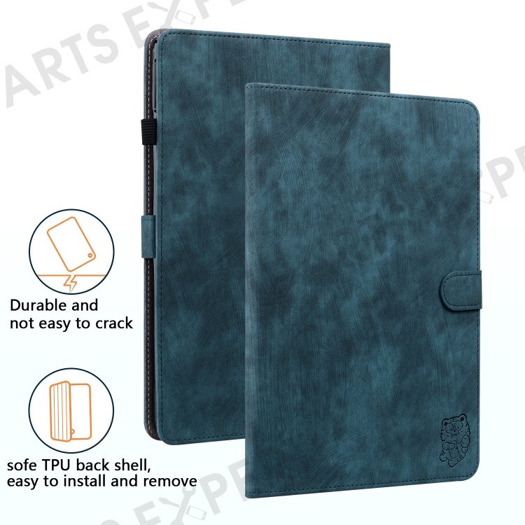 For Samsung Galaxy Tab S10+ / S9+ Imprinted Cute Tiger Pattern Tablet Case PU Leather Card Holder Stand Cover - Dark Blue