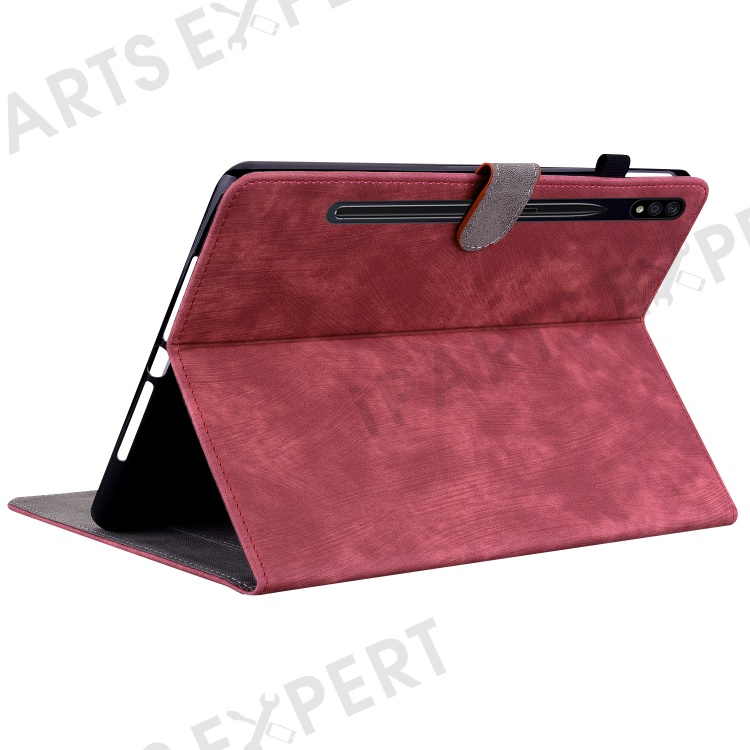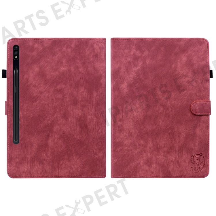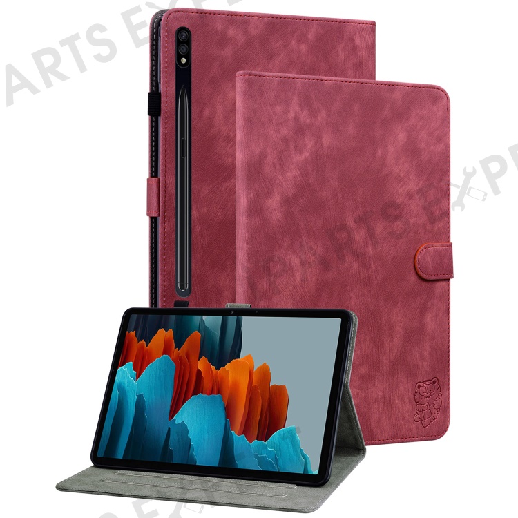 For Samsung Galaxy Tab S10+ / S9+ Imprinted Cute Tiger Pattern Tablet Case PU Leather Card Holder Stand Cover - Red