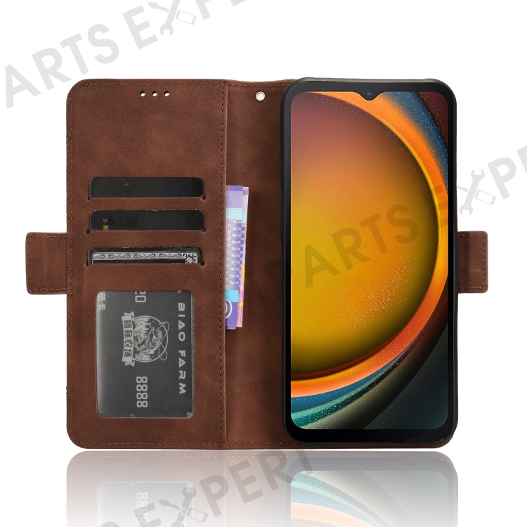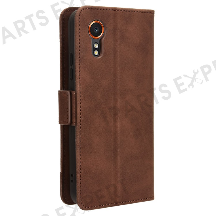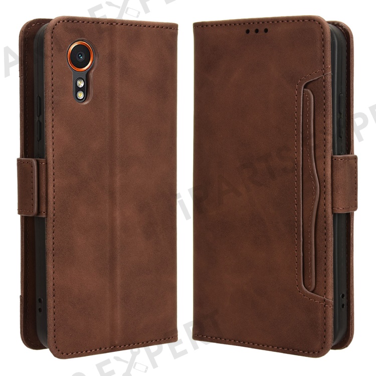 For Samsung Galaxy Xcover7 Case Wallet Leather Phone Cover with Multiple Card Slots - Brown