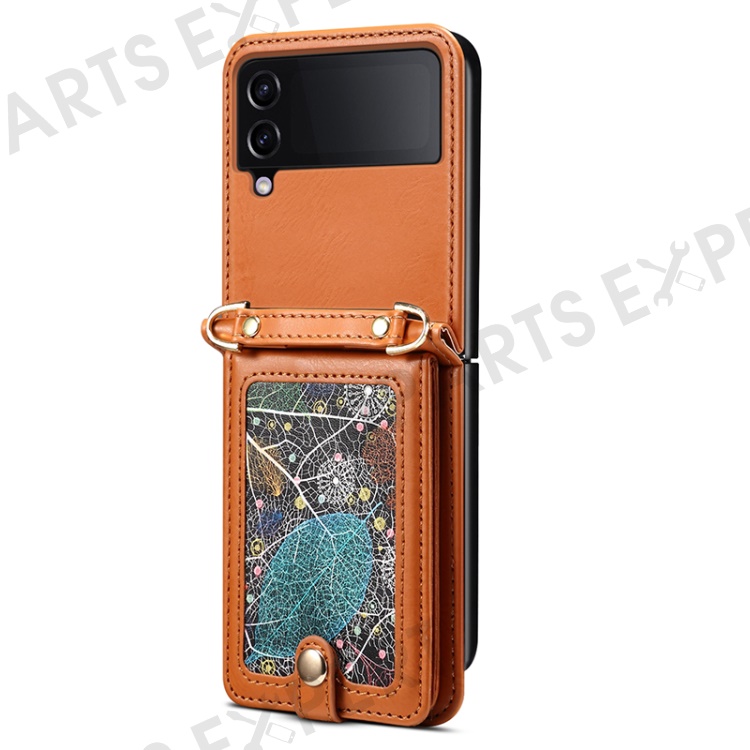 For Samsung Galaxy Z Flip3 5G Case Pattern Card Holder Phone Cover - Khaki