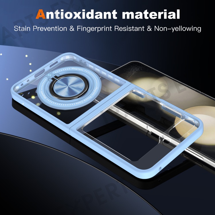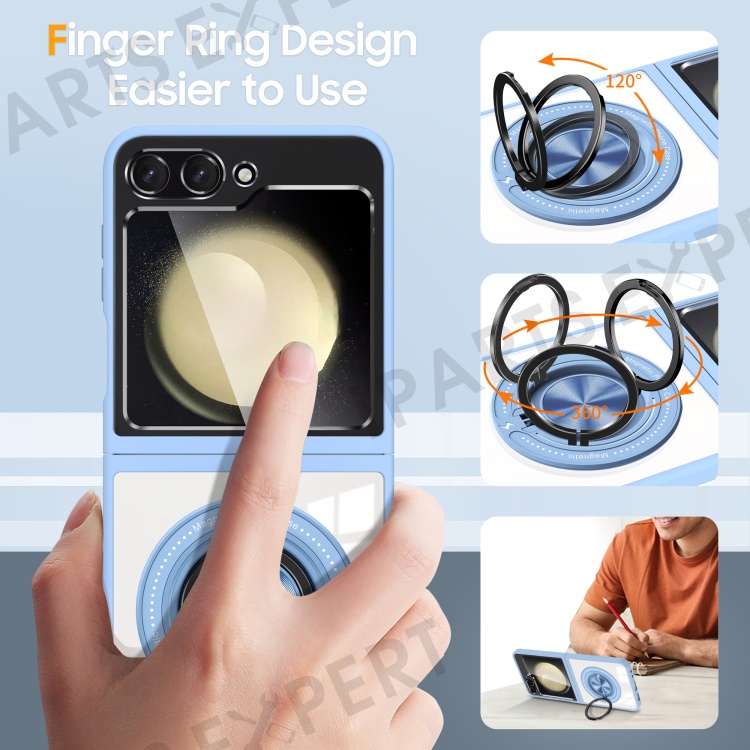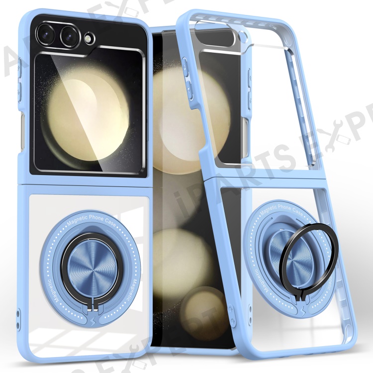 For Samsung Galaxy Z Flip5 5G Case Magnetic Ring Kickstand PC+TPU Hybrid Phone Cover - Baby Blue