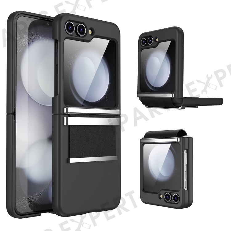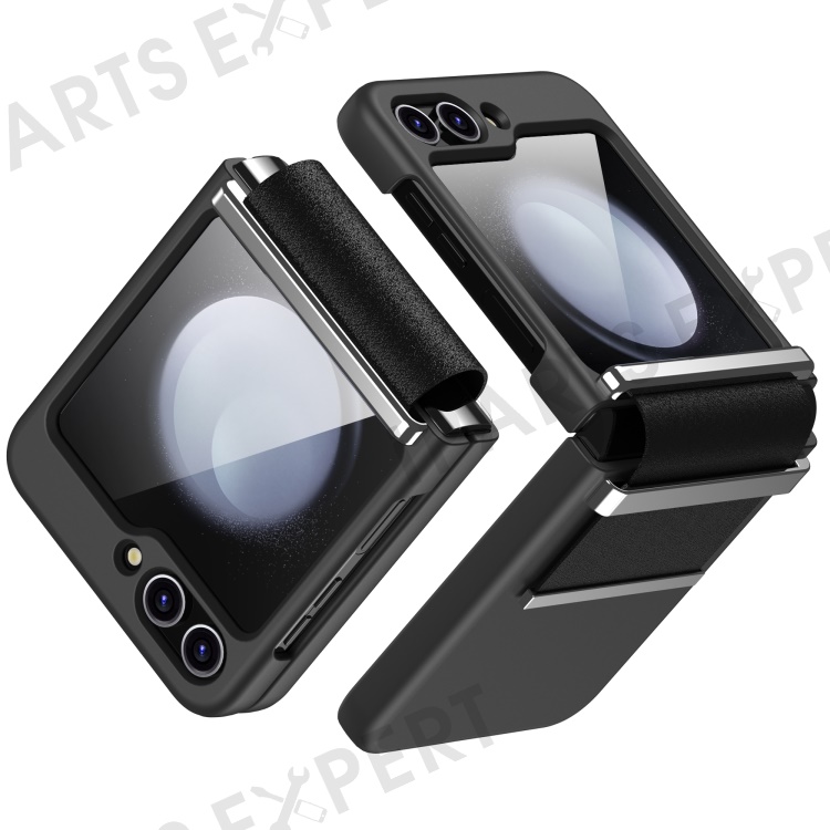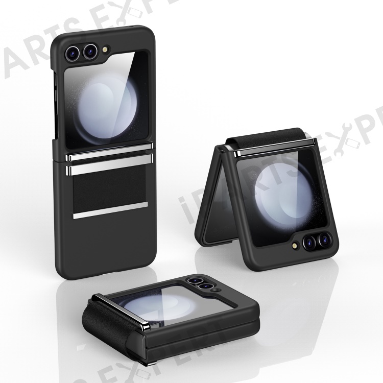 For Samsung Galaxy Z Flip5 5G Case PC+PU+Metal Shockproof Phone Cover - Black / Silver