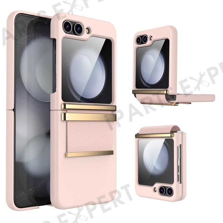 For Samsung Galaxy Z Flip5 5G Case PC+PU+Metal Shockproof Phone Cover - Rose Gold / Gold