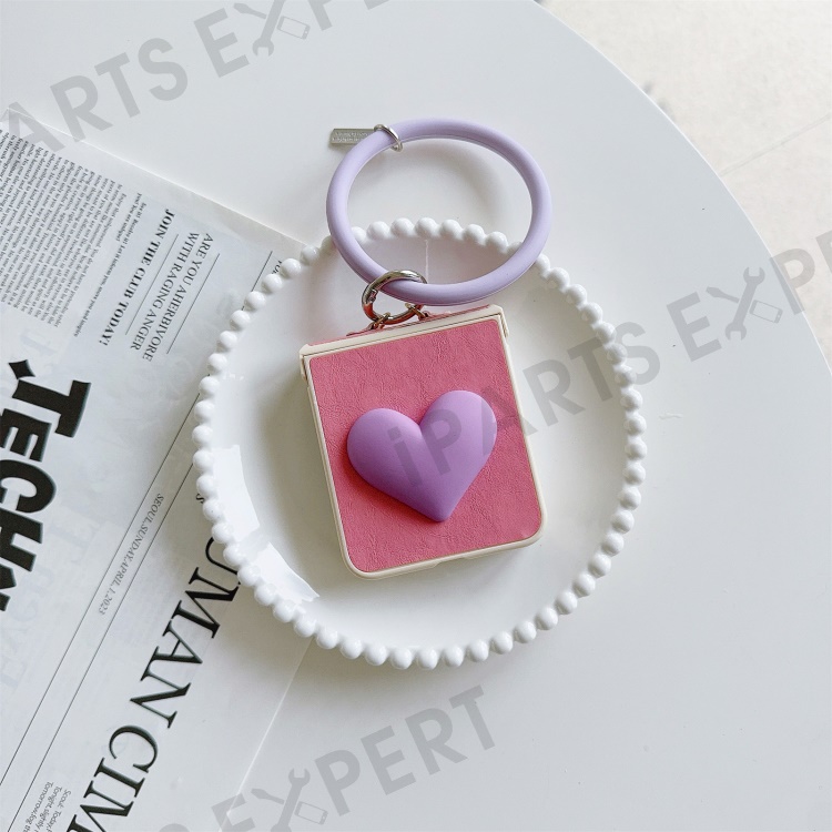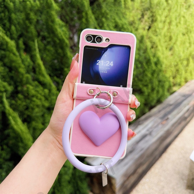 For Samsung Galaxy Z Flip5 5G Cover PU Leather+PC Phone Protective Case with Round Wristband Crazy Horse Texture - Pink
