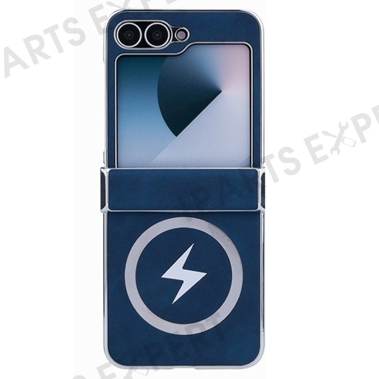 For Samsung Galaxy Z Flip7 FE 5G / Z Flip6 5G Magnetic Case Leather+PC+Metal Phone Cover - Dark Blue
