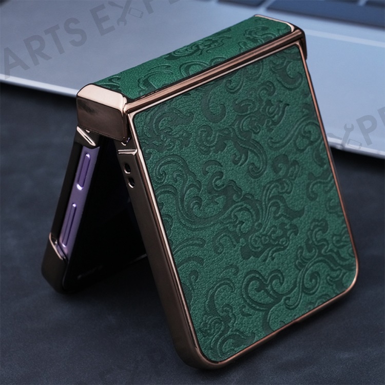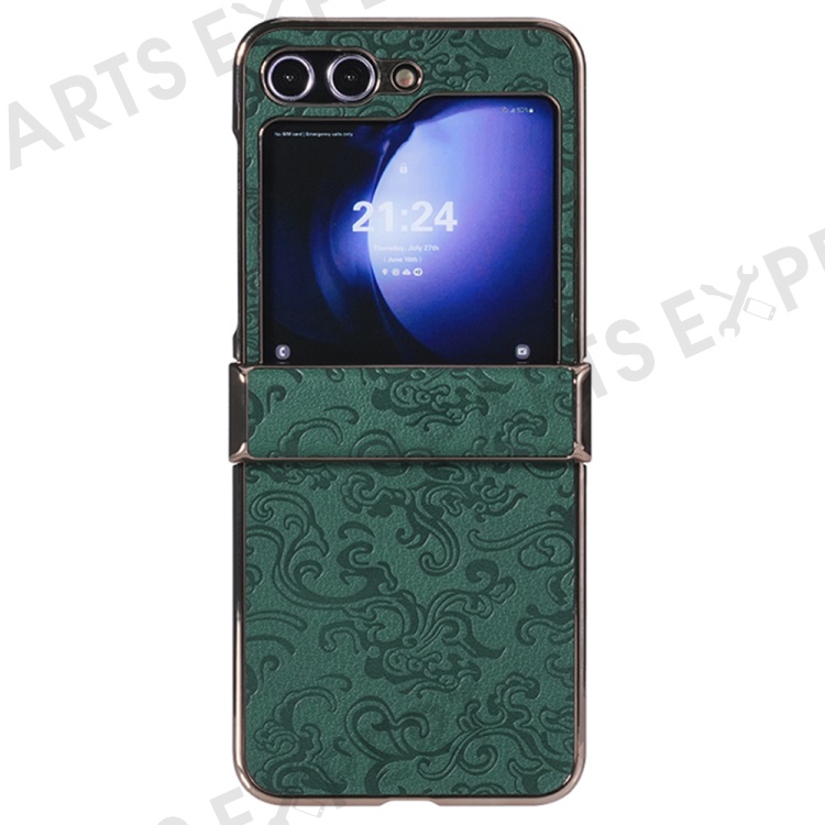 For Samsung Galaxy Z Flip7 FE 5G / Z Flip6 5G Case Hinge Protection Loong Textured Leather+PC Electroplating Phone Cover - Dark Green