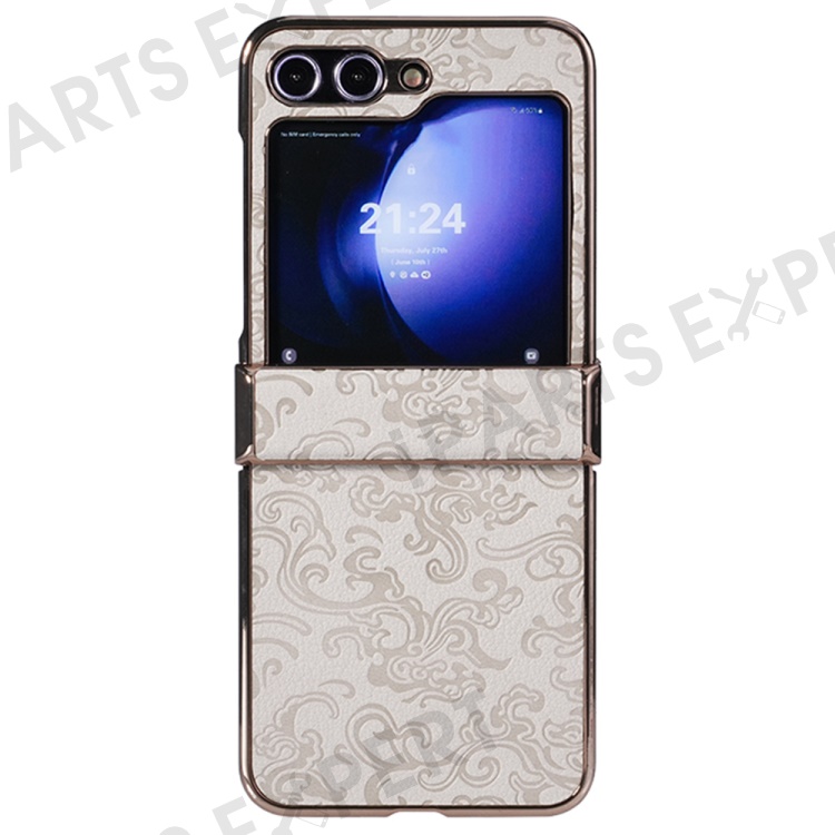 For Samsung Galaxy Z Flip7 FE 5G / Z Flip6 5G Case Hinge Protection Loong Textured Leather+PC Electroplating Phone Cover - Grey White