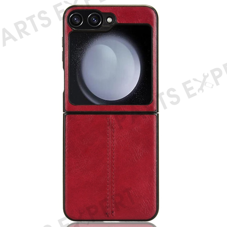 For Samsung Galaxy Z Flip7 FE 5G / Z Flip6 5G Case Stitching Lines Cowhide Texture Leather Back Phone Cover - Red