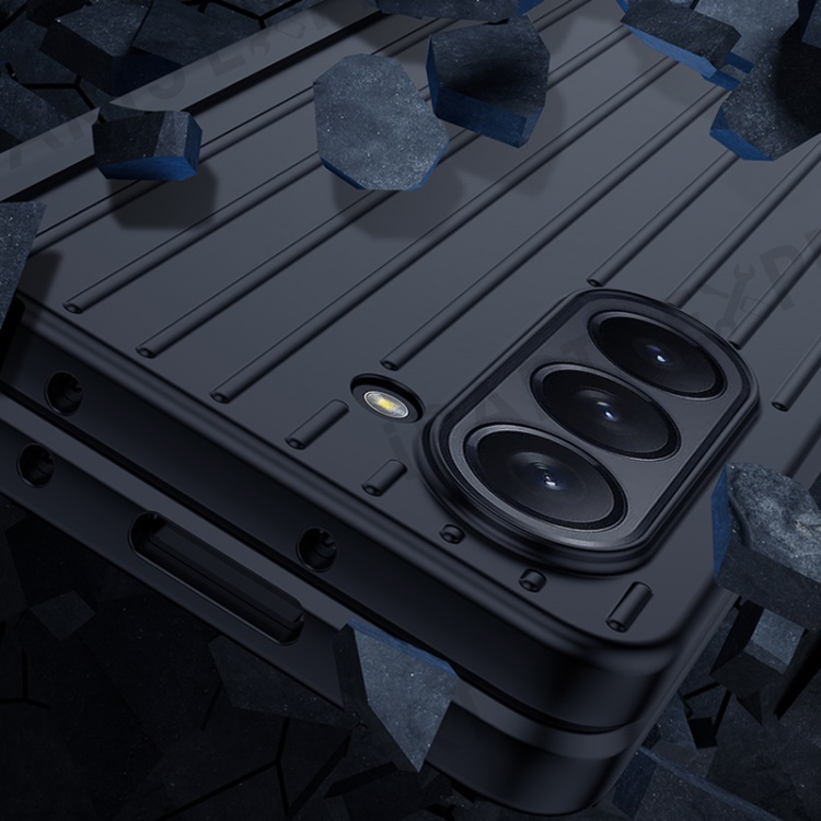 For Samsung Galaxy Z Fold 5G Phone Case Anti-Drop Hard PC Case Striped Design Shockproof Phone Cover - Black