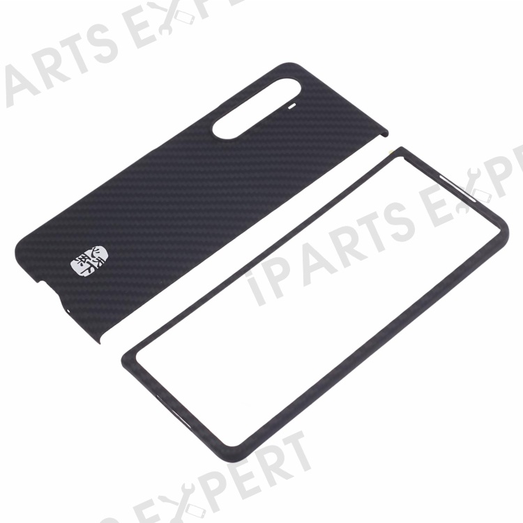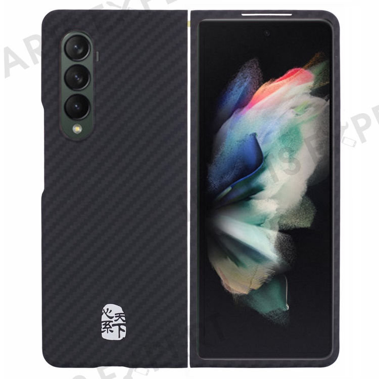 For Samsung Galaxy Z Fold3 5G Case 1500D Coarse Texture ramid Fiber Smartphone Shell (Big Rear Lens Hole) - Silver Chinese Character