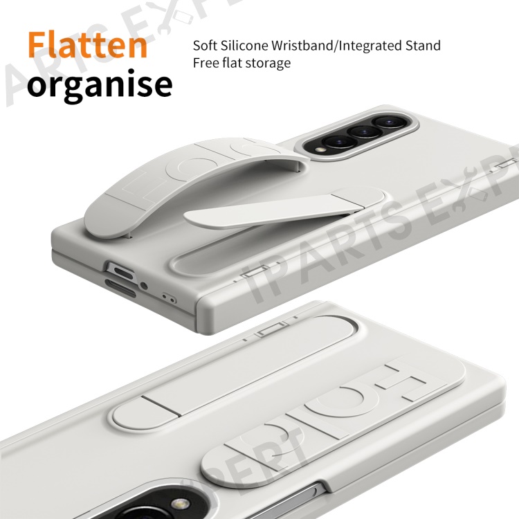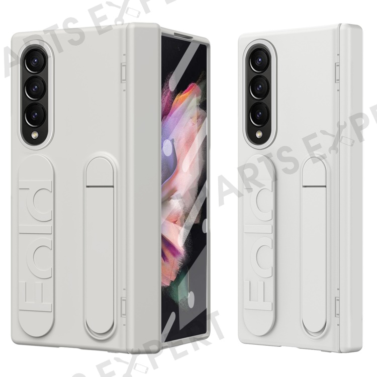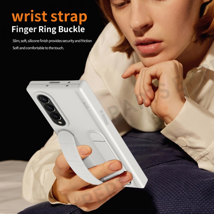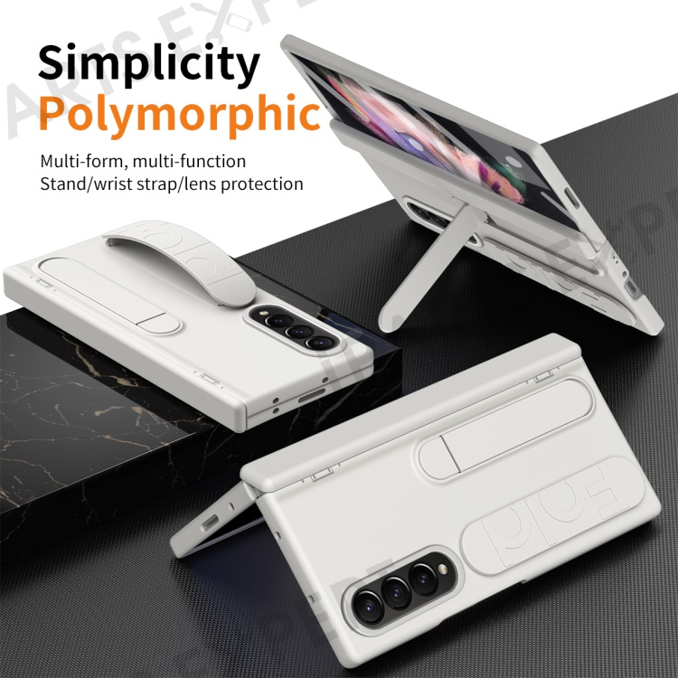 For Samsung Galaxy Z Fold3 5G Case Kickstand Wristband PC Phone Cover with Tempered Glass Film - White