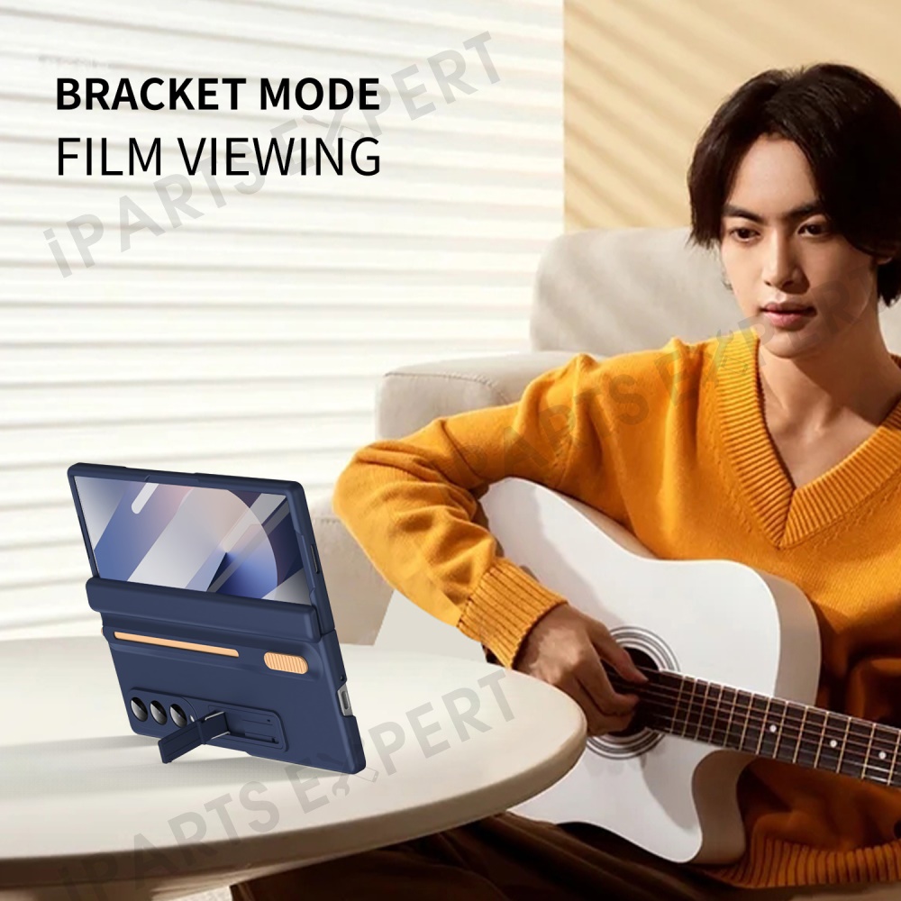 For Samsung Galaxy Z Fold4 5G Kickstand Phone Case with Tempered Glass Screen Protector and Stylus Pen - Sapphire