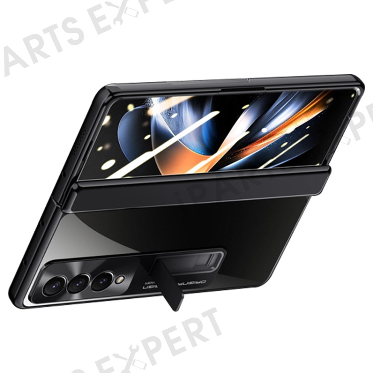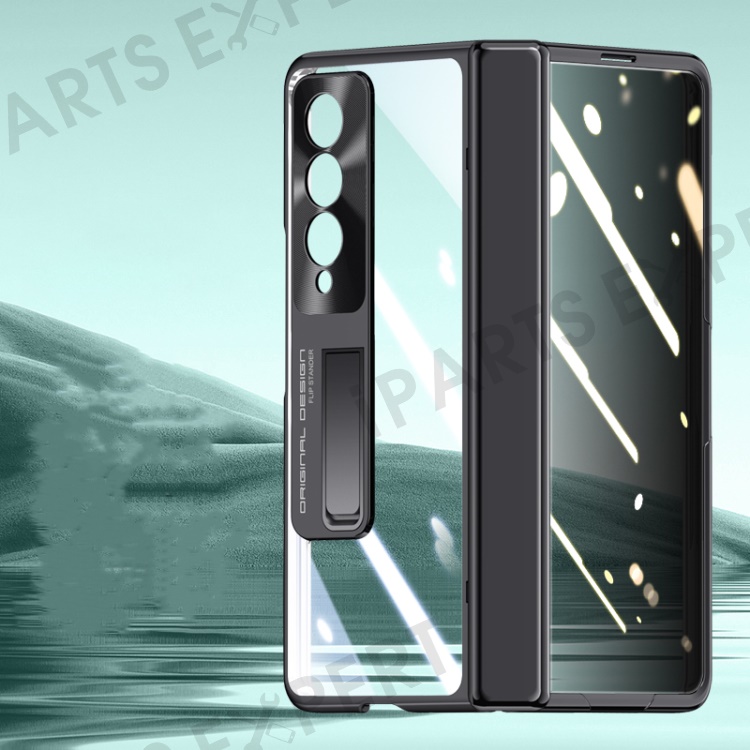 For Samsung Galaxy Z Fold4 5G Phone Case Electroplating Kickstand Cover with HD Clear Screen Protector - Black