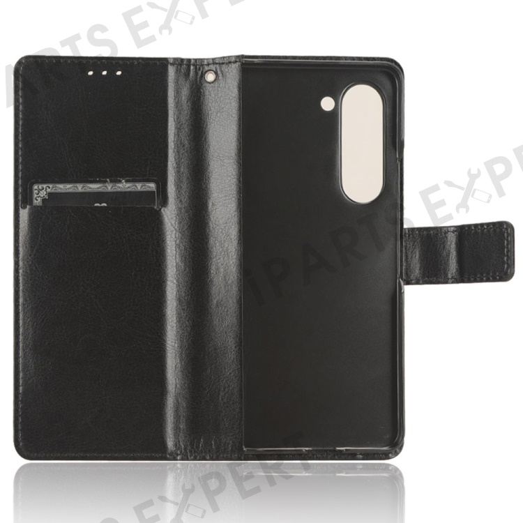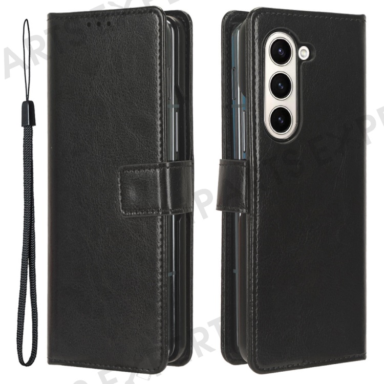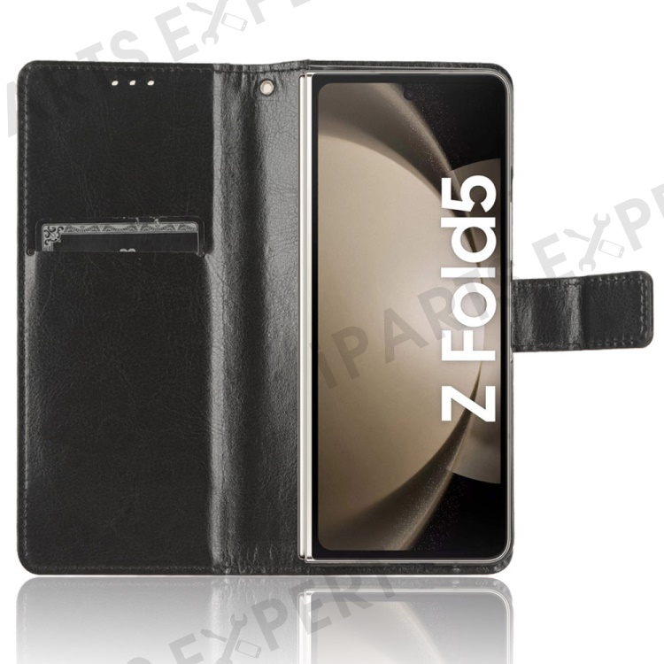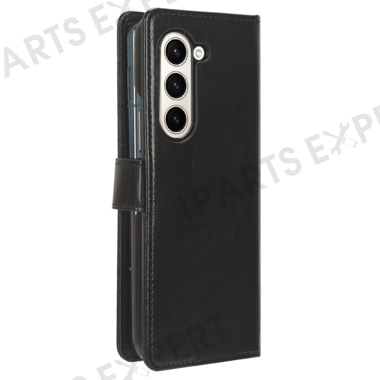 For Samsung Galaxy Z Fold5 5G Card Holder Phone Leather Case Crazy Horse Texture Stand Cover - Black