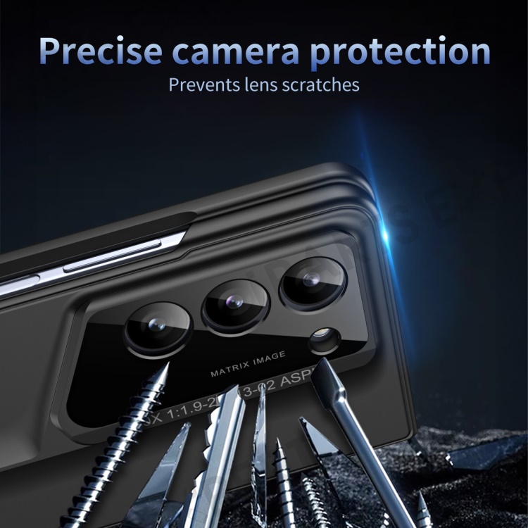 For Samsung Galaxy Z Fold5 5G Case 918 Series Built-In Tempered Glass Film PC Phone Cover with Stylus - Black