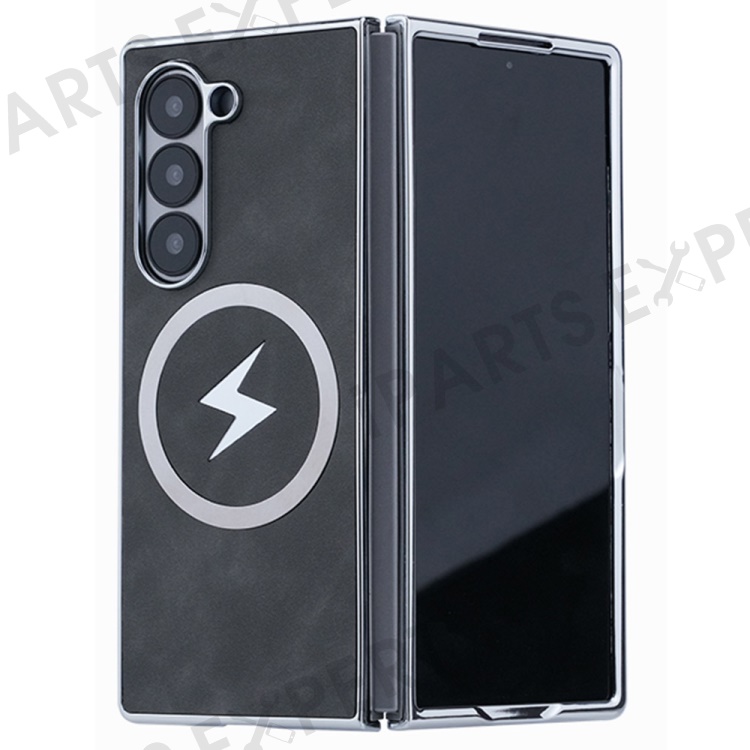 For Samsung Galaxy Z Fold6 5G Magnetic Case Leather+PC+Metal Phone Cover - Black