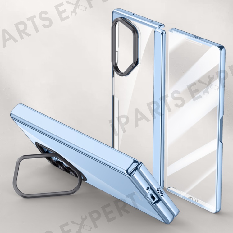 For Samsung Galaxy Z Fold6 5G Kickstand Case PC+Acrylic Clear Phone Cover with HD Screen Film - Blue