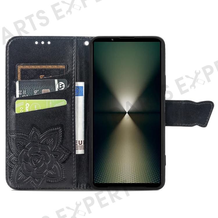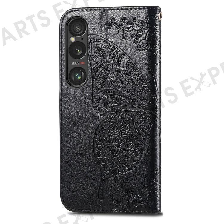For Sony Xperia 1 VI Case Butterfly Pattern PU Leather Flip Phone Cover - Black
