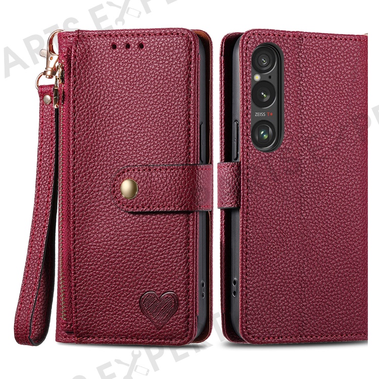 For Sony Xperia 1 VI Case RFID Blocking Zipper Flip Leather Phone Cover - Red