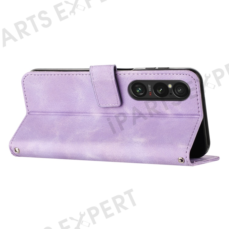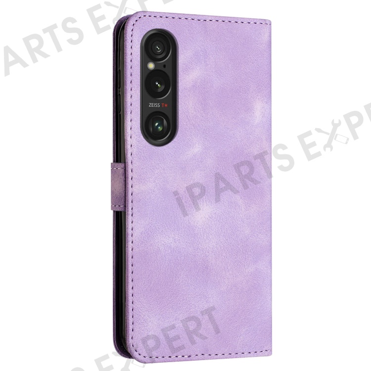 For Sony Xperia 1 VI Case Triangle Imprinted Stand Wallet Leather Phone Cover - Purple
