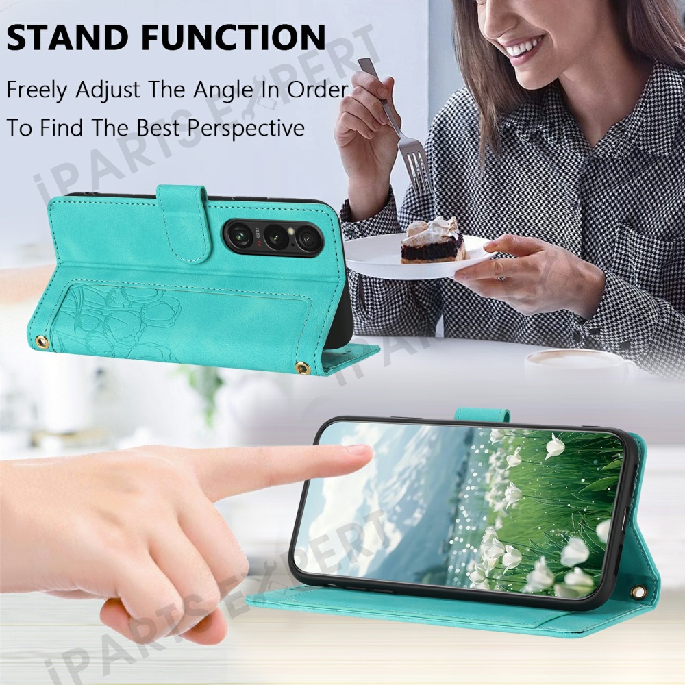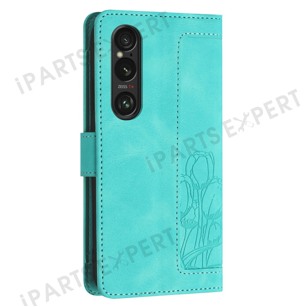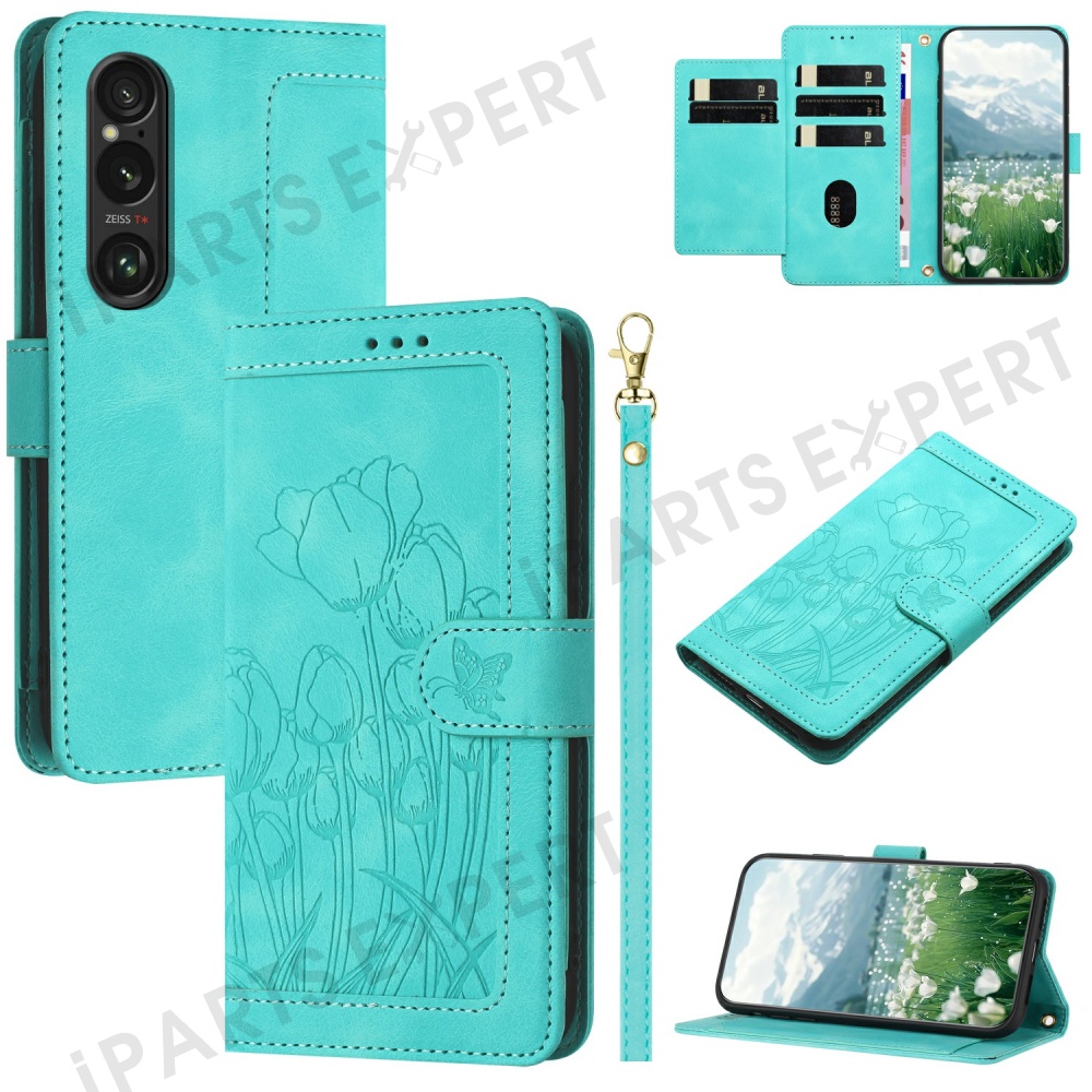 For Sony Xperia 1 VI Tulip Leather Case Phone Cover with 5 Card Slots Wallet - Green