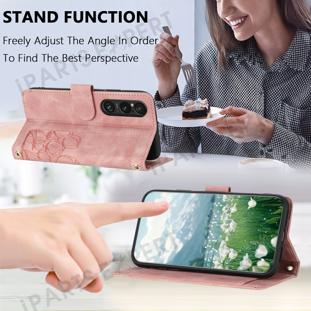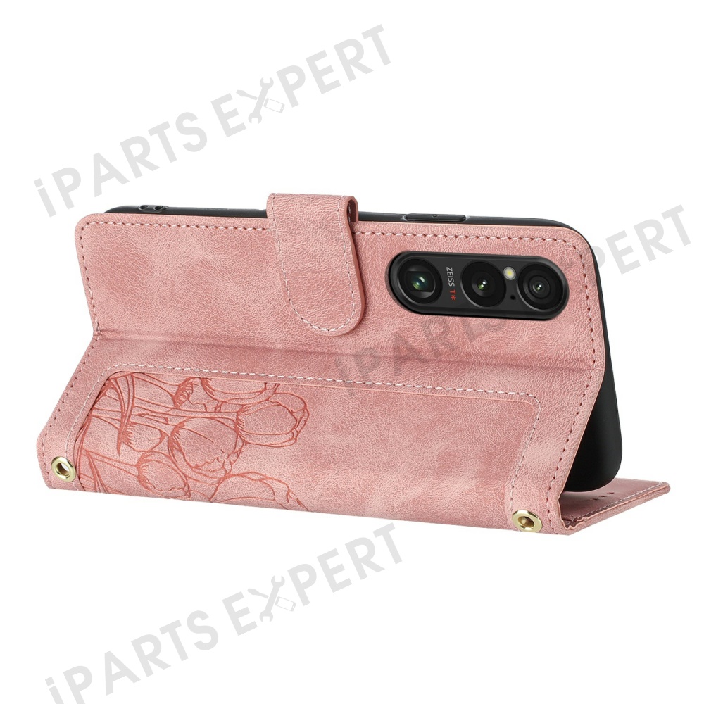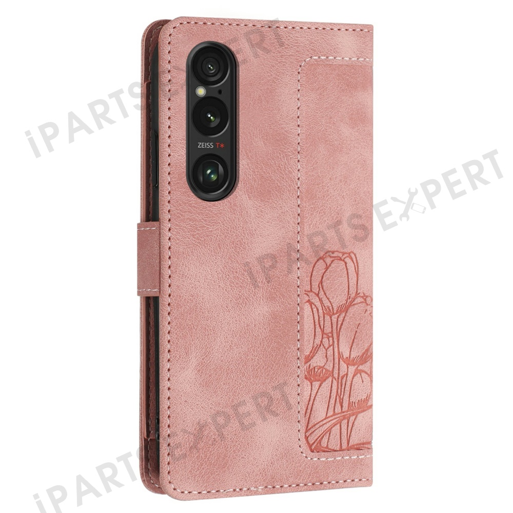 For Sony Xperia 1 VI Tulip Leather Case Phone Cover with 5 Card Slots Wallet - Pink