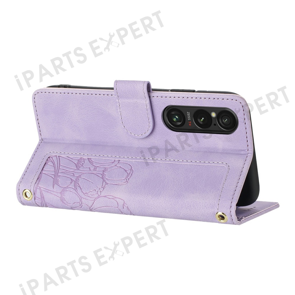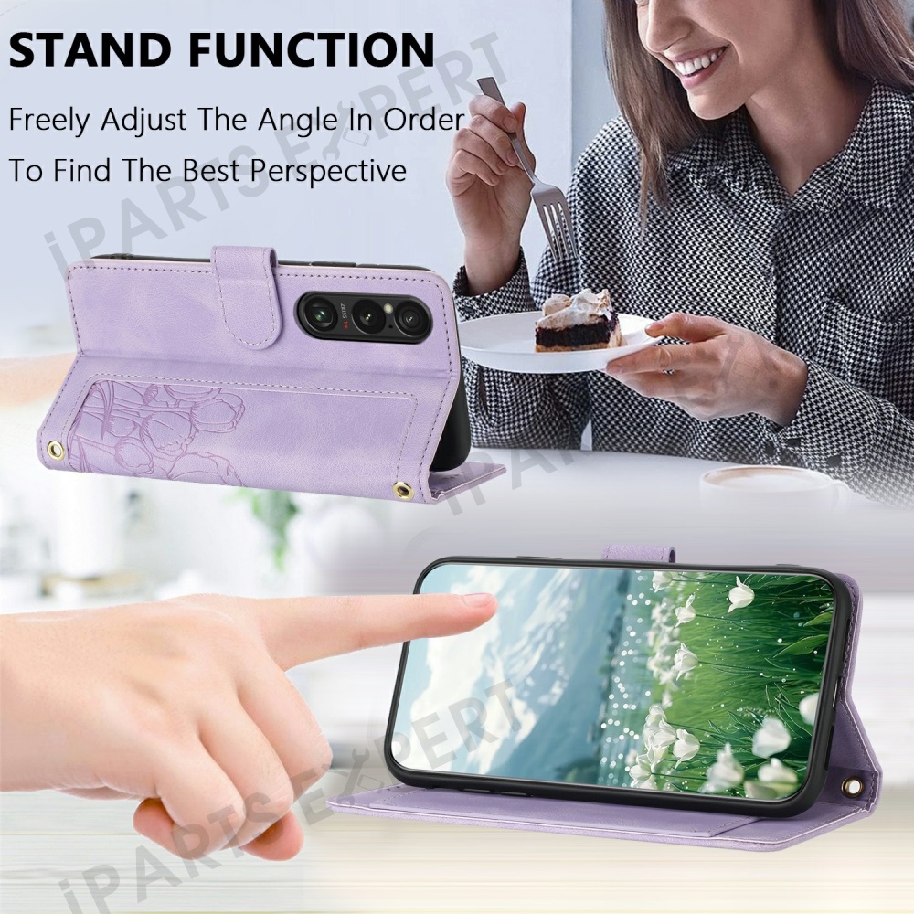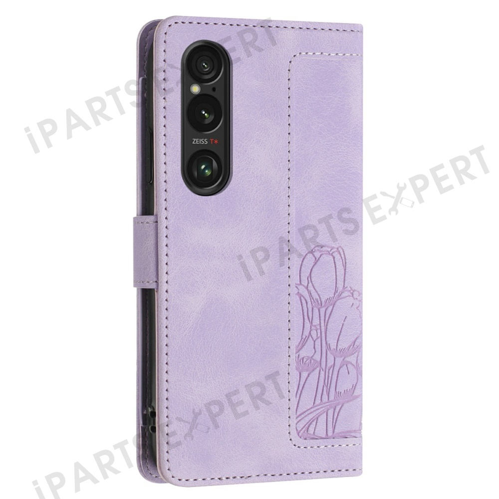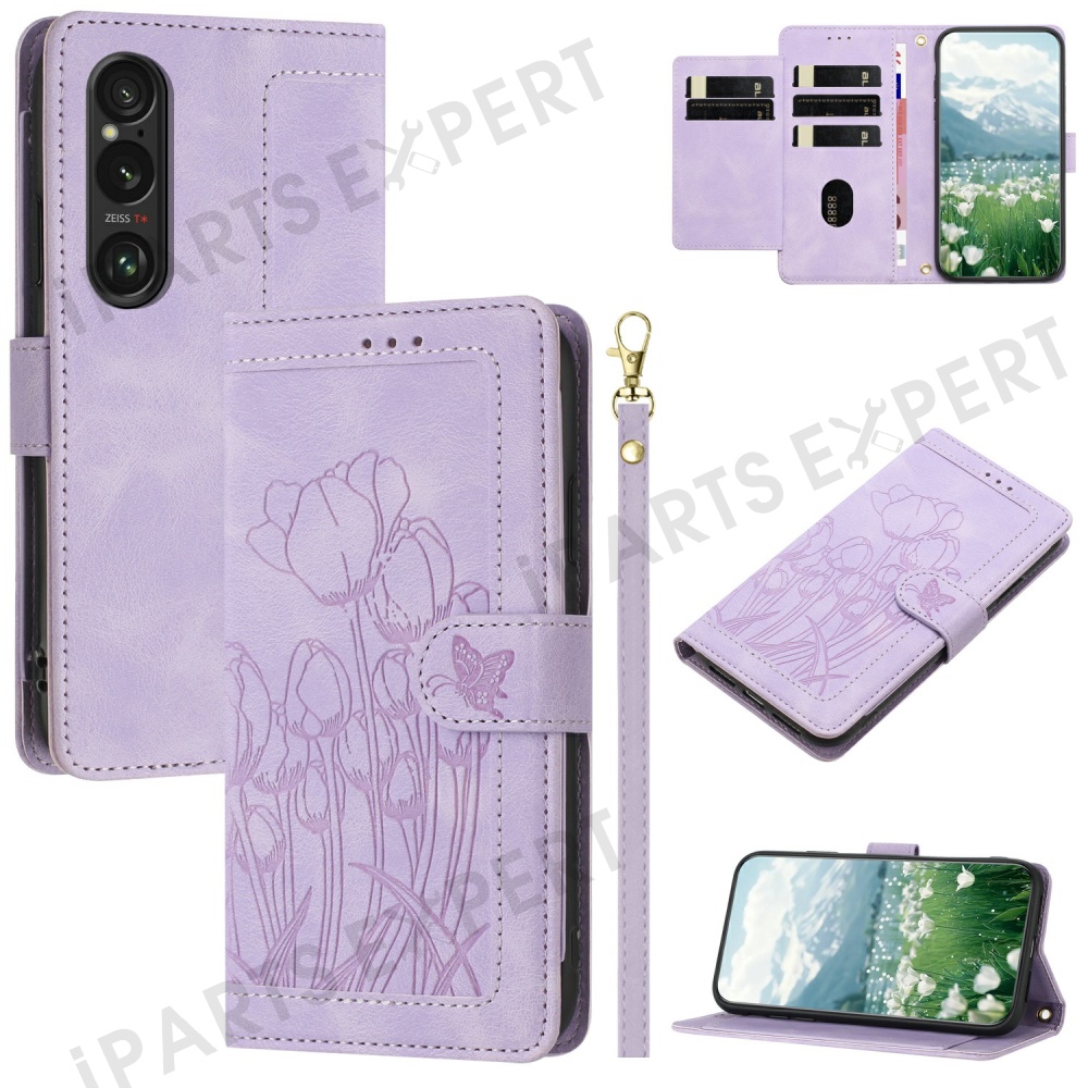 For Sony Xperia 1 VI Tulip Leather Case Phone Cover with 5 Card Slots Wallet - Purple