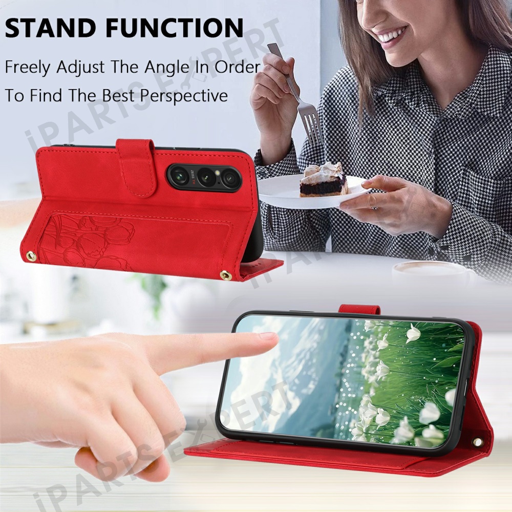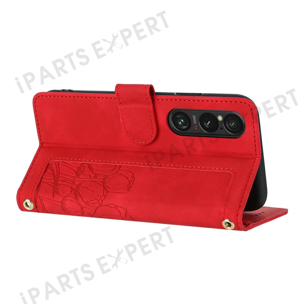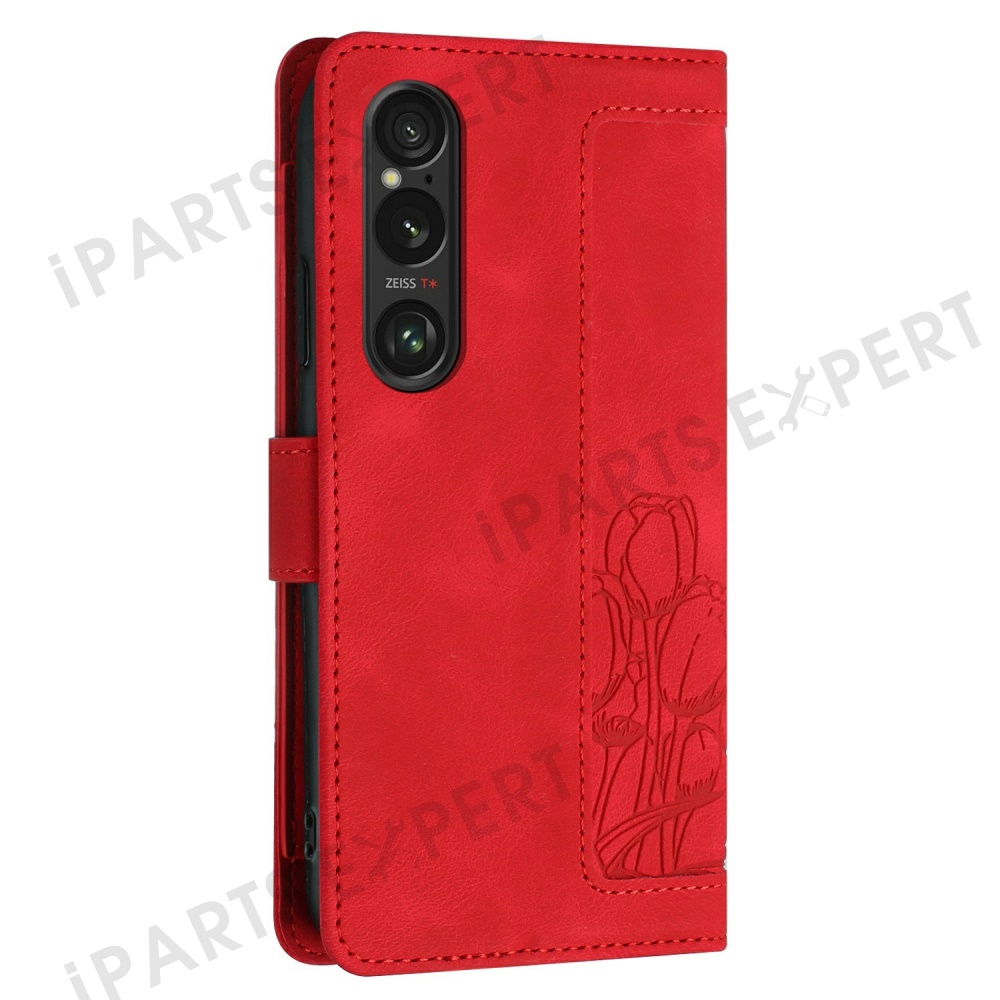 For Sony Xperia 1 VI Tulip Leather Case Phone Cover with 5 Card Slots Wallet - Red