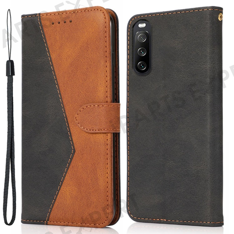 For Sony Xperia 10 V PU Leather Phone Case Stand Color Splicing Wallet Flip Cover - Black+Brown