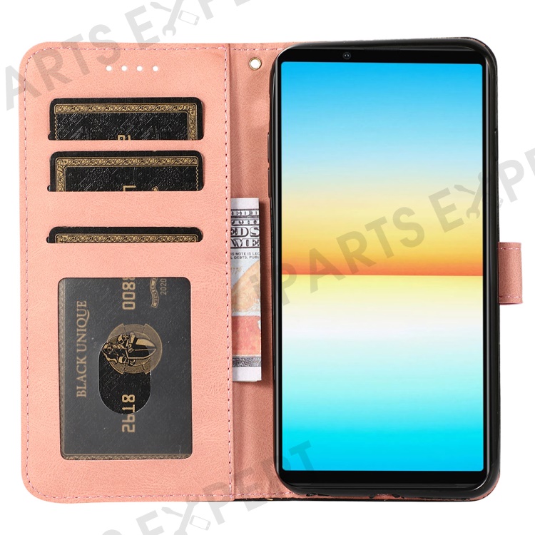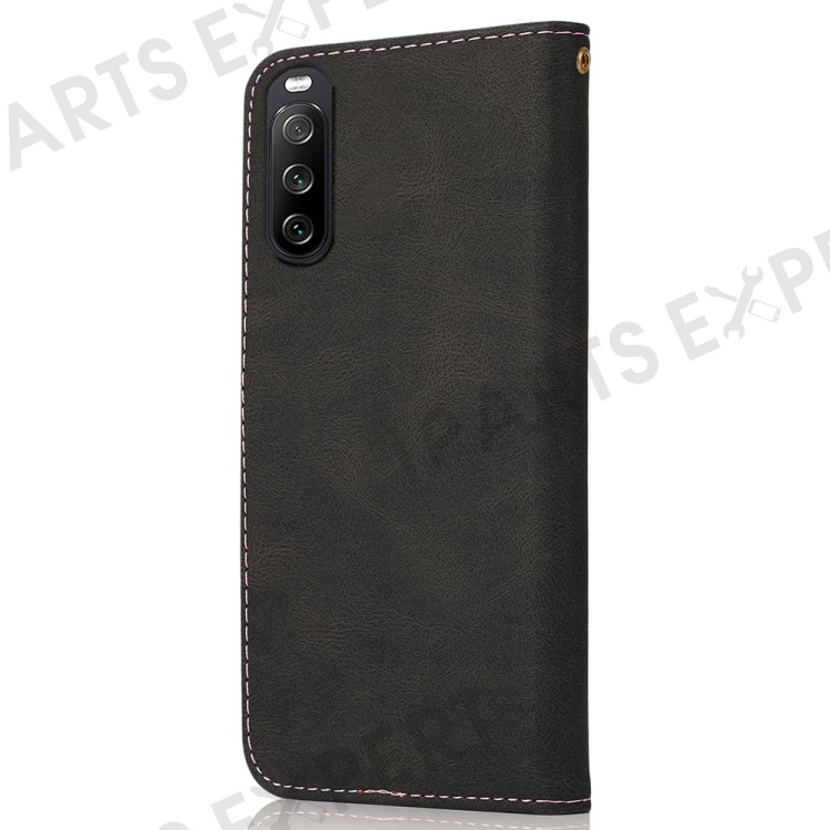 For Sony Xperia 10 V PU Leather Phone Case Stand Color Splicing Wallet Flip Cover - Black+Rose Gold