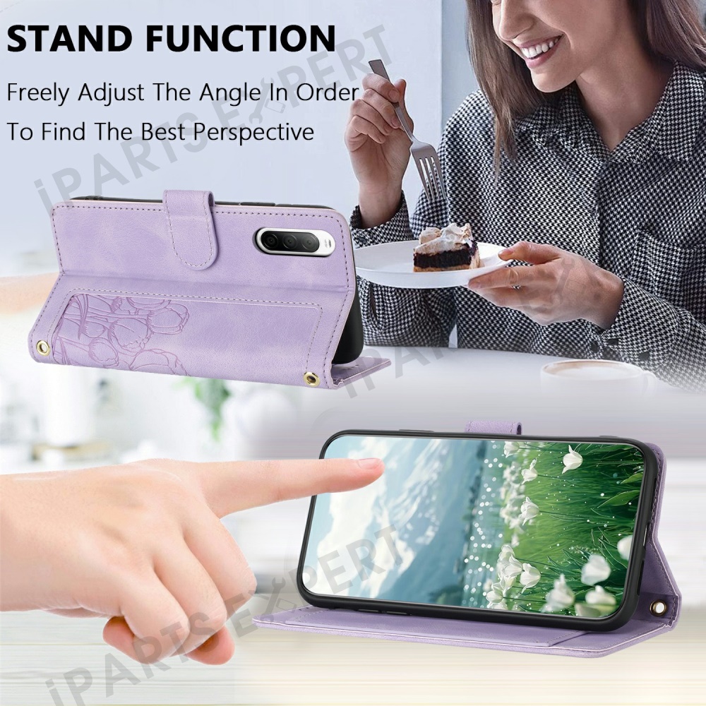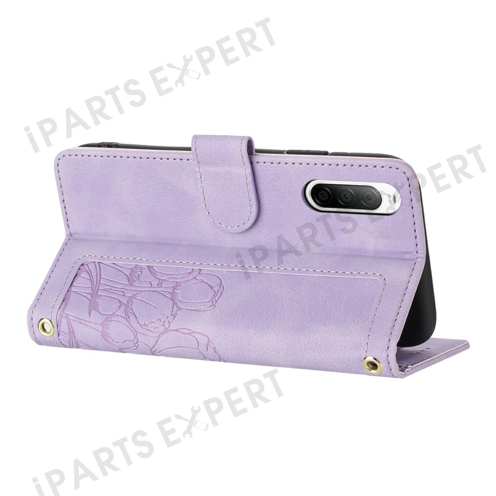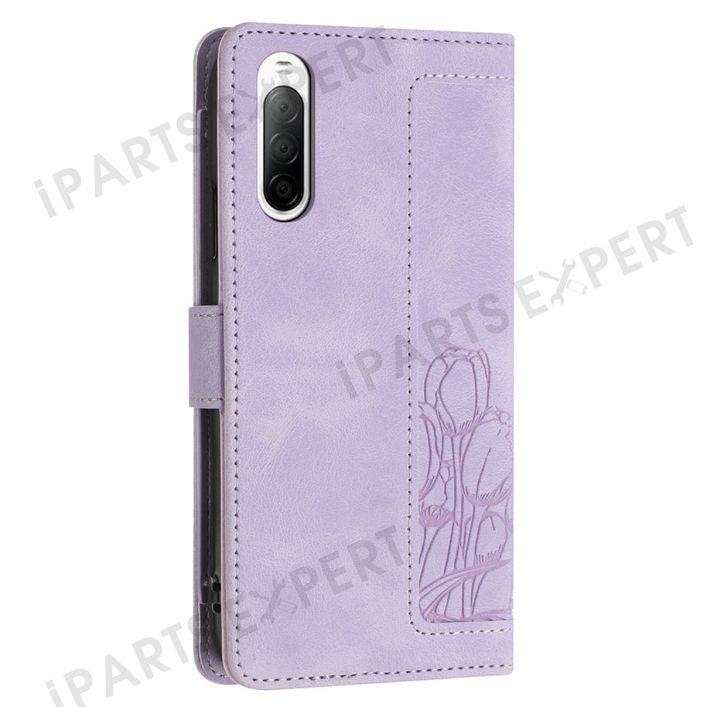For Sony Xperia 10 V Tulip Leather Case Phone Cover with 5 Card Slots Wallet - Purple