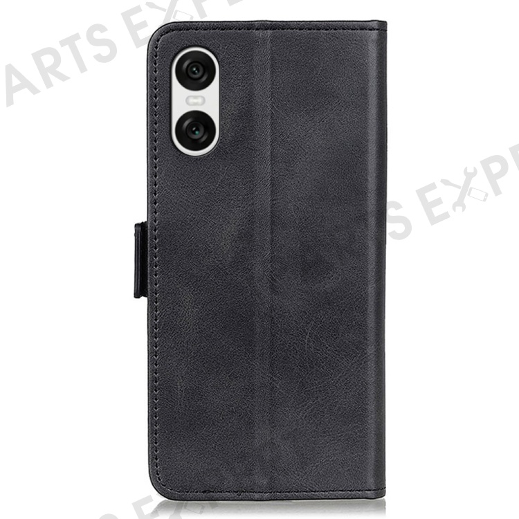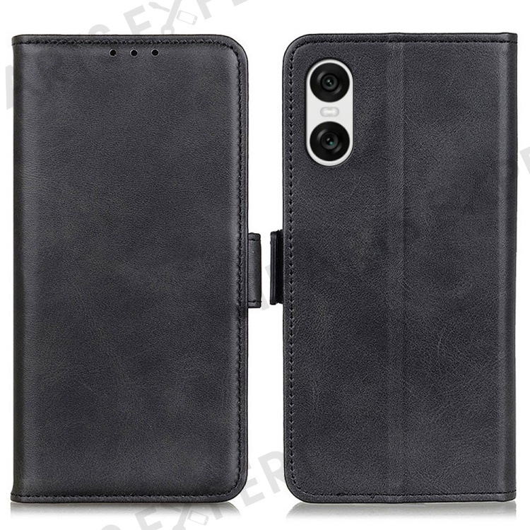 For Sony Xperia 10 VI Case PU Leather Wallet Phone Cover Cowhide Texture - Black