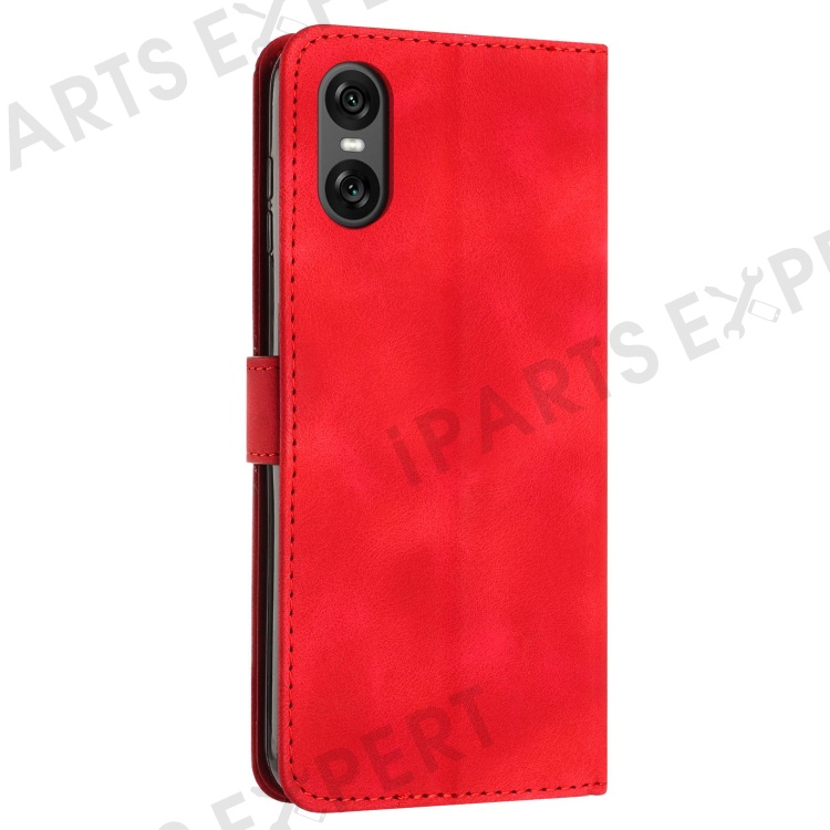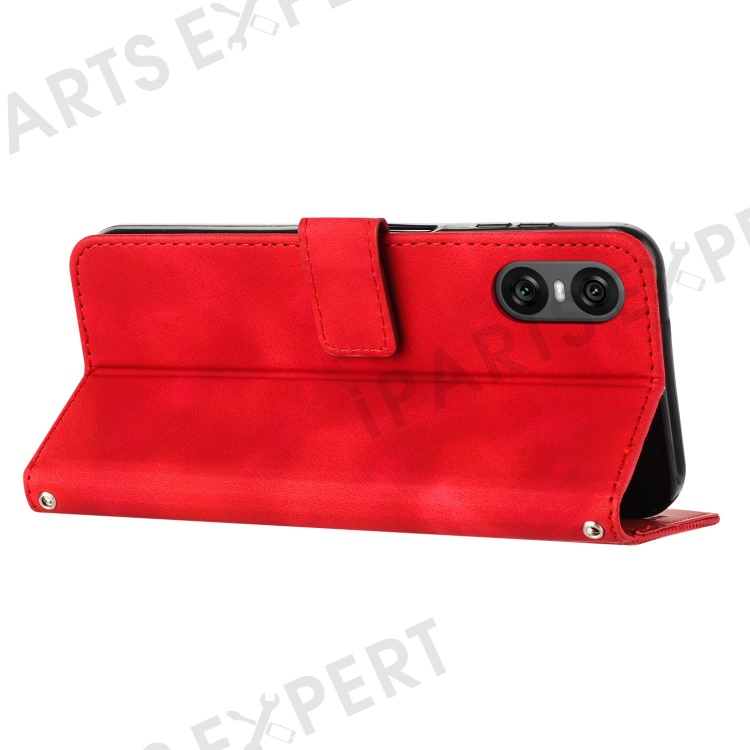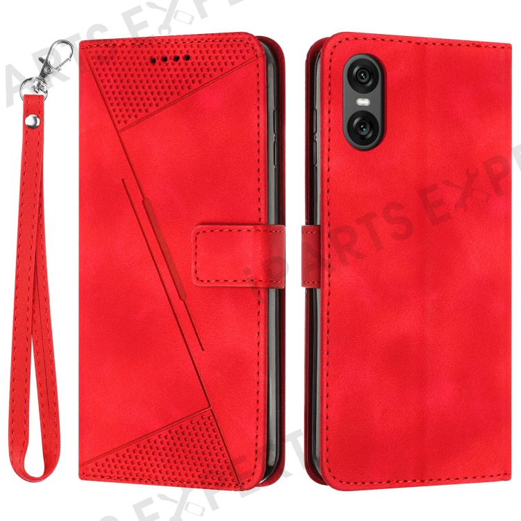 For Sony Xperia 10 VI Case with Hand Strap Triangle Imprinted Wallet Phone Leather Cover - Red