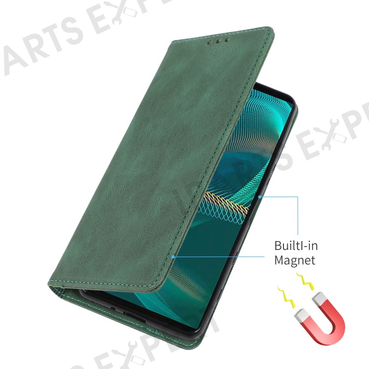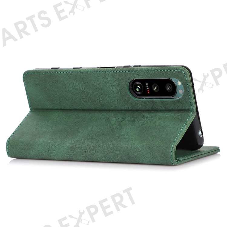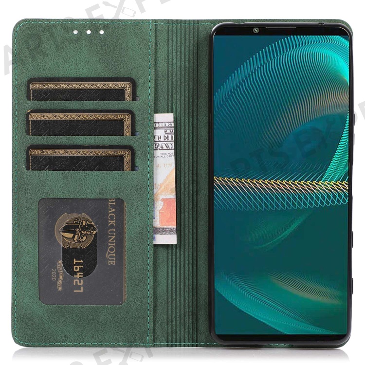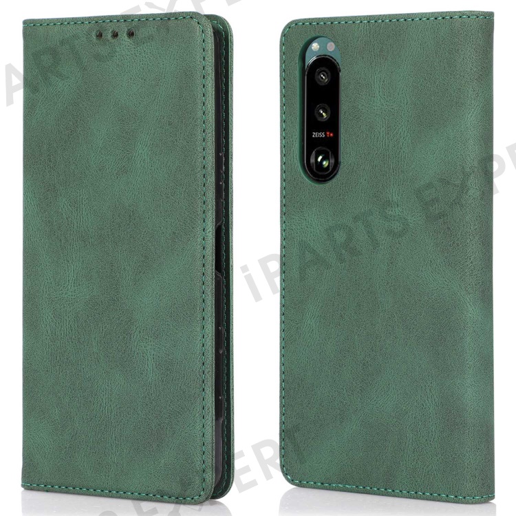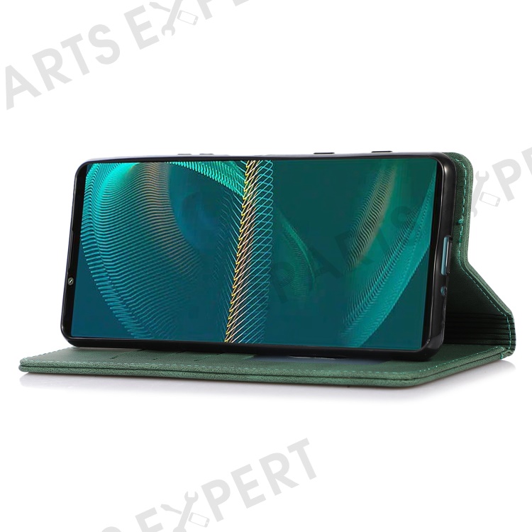 For Sony Xperia 5 III 5G Shockproof Case PU Leather Wallet Phone Shell Magnetic Closure Stand Cover - Green