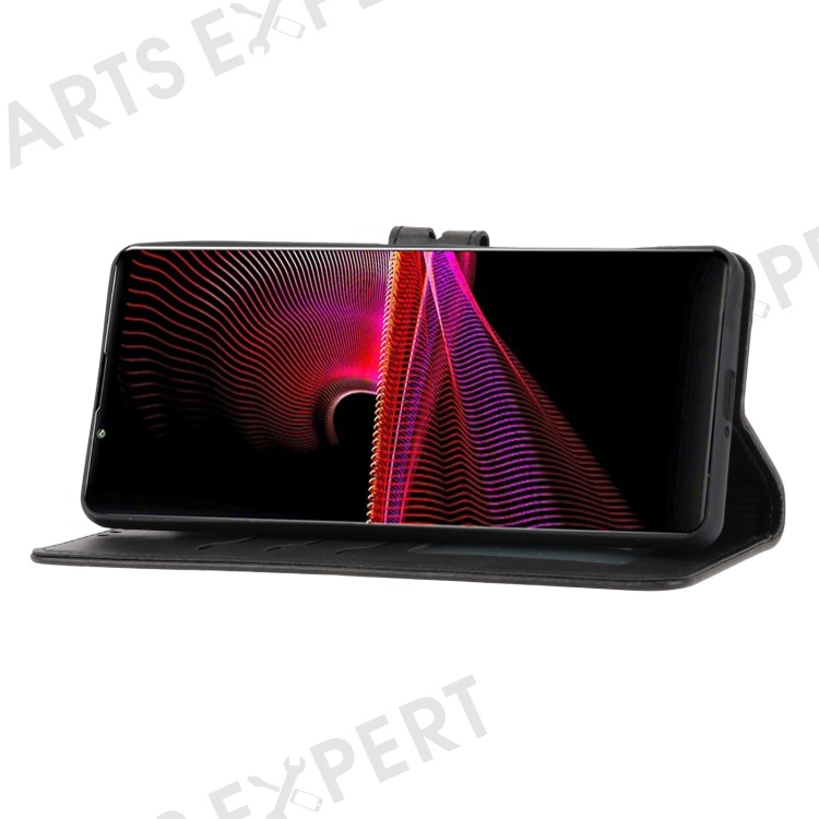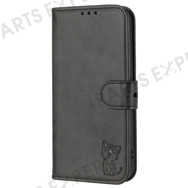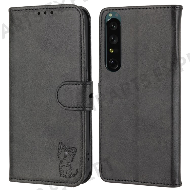 For Sony Xperia 5 IV 5G Case Happy Cat Pattern Imprinted Leather Wallet Phone Cover - Black