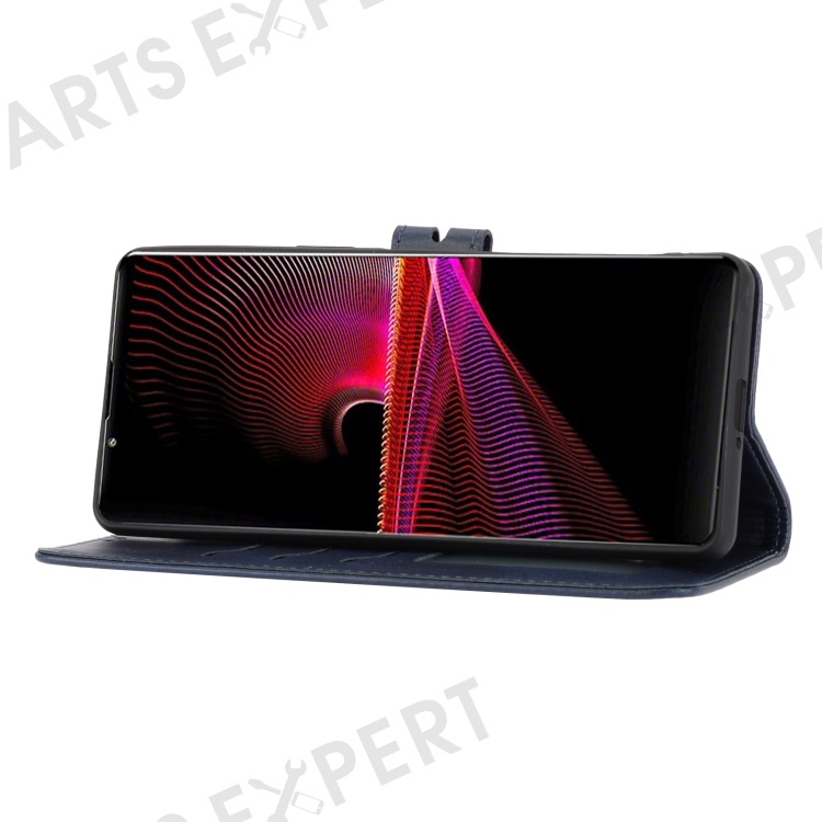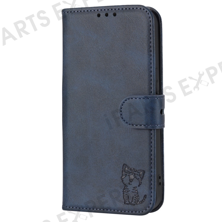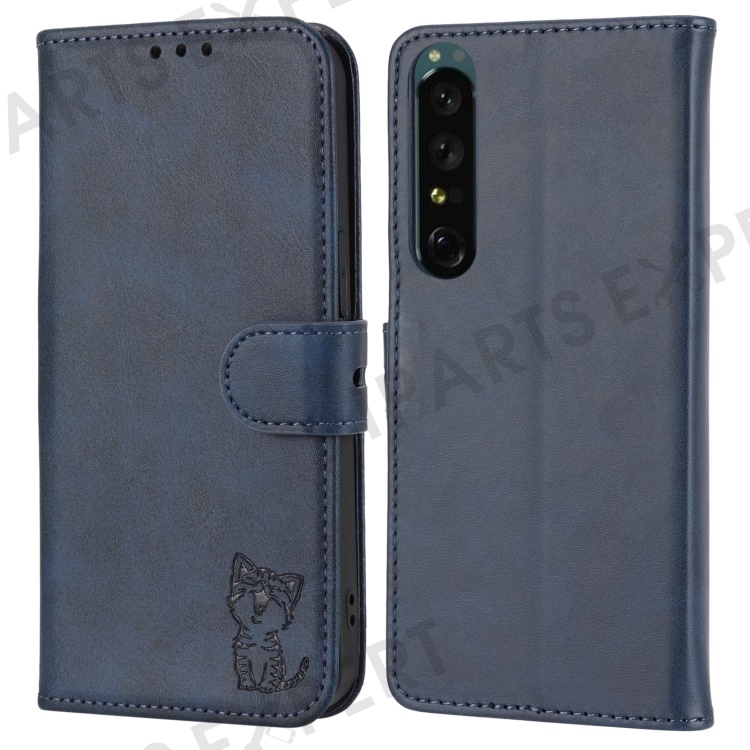 For Sony Xperia 5 IV 5G Case Happy Cat Pattern Imprinted Leather Wallet Phone Cover - Blue