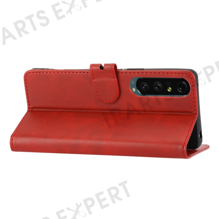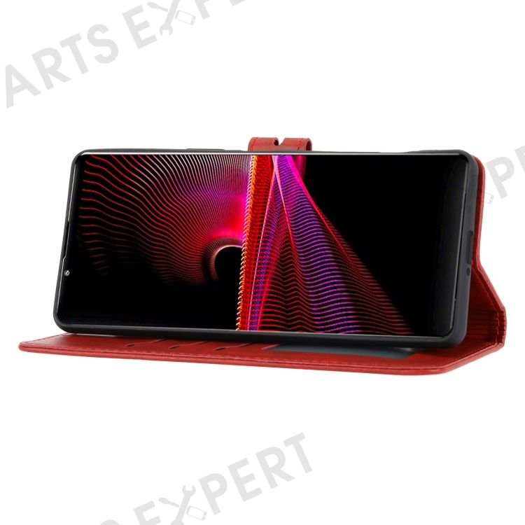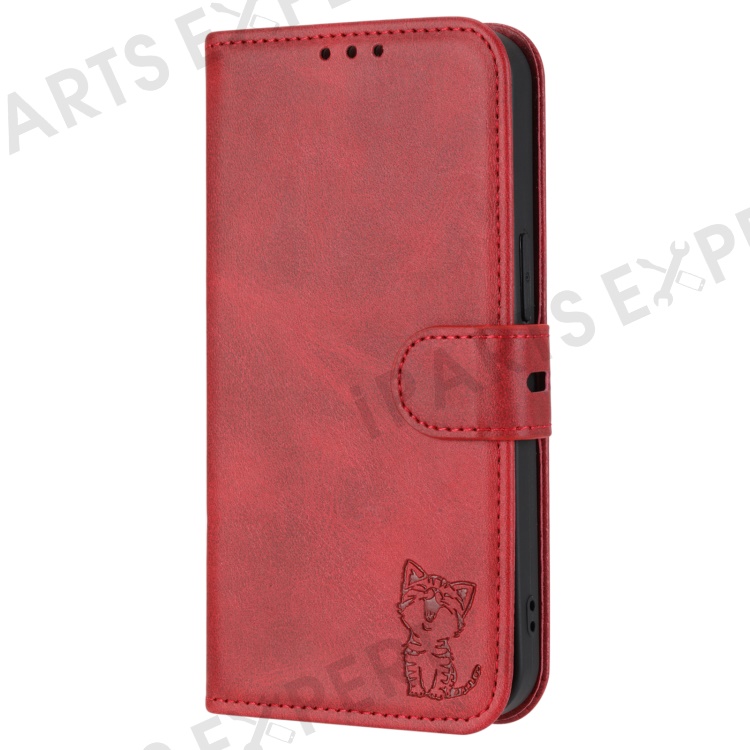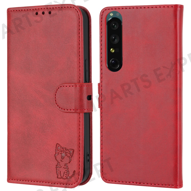For Sony Xperia 5 IV 5G Case Happy Cat Pattern Imprinted Leather Wallet Phone Cover - Red