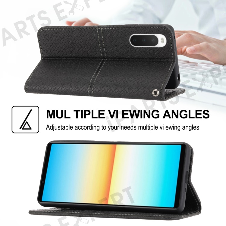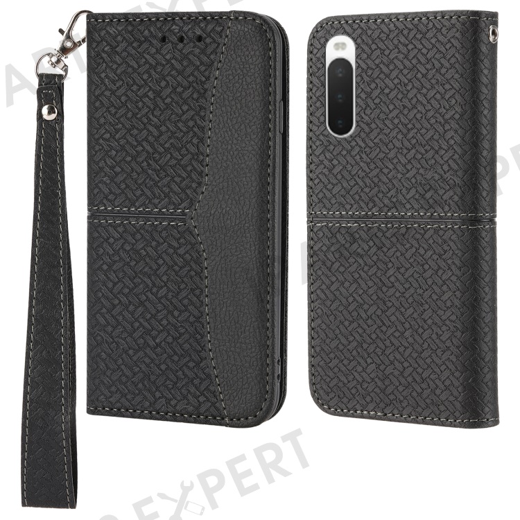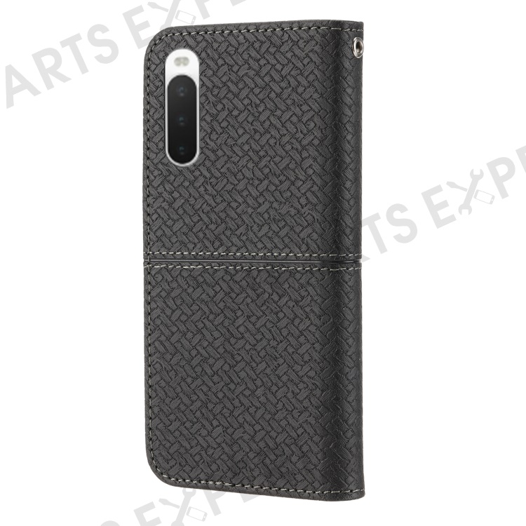 For Sony Xperia 5 IV 5G Case Woven Texture PU Leather Wallet Phone Cover - Black