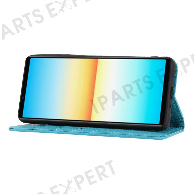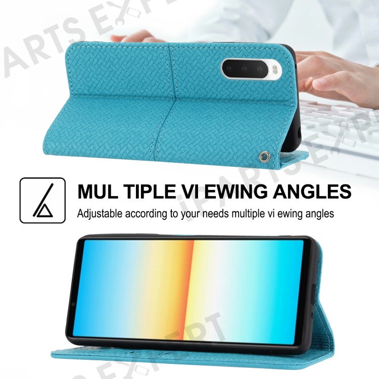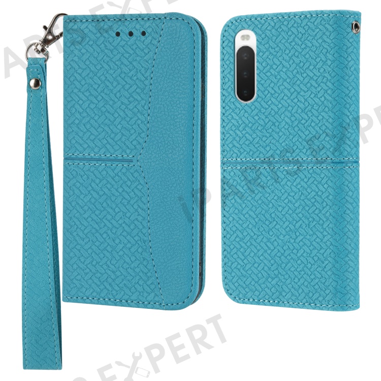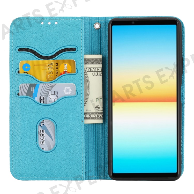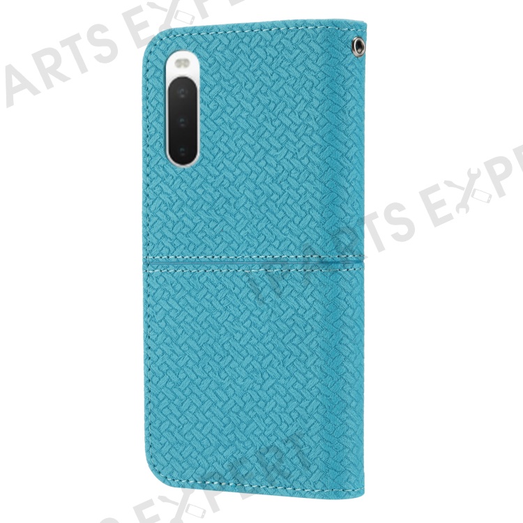 For Sony Xperia 5 IV 5G Case Woven Texture PU Leather Wallet Phone Cover - Blue