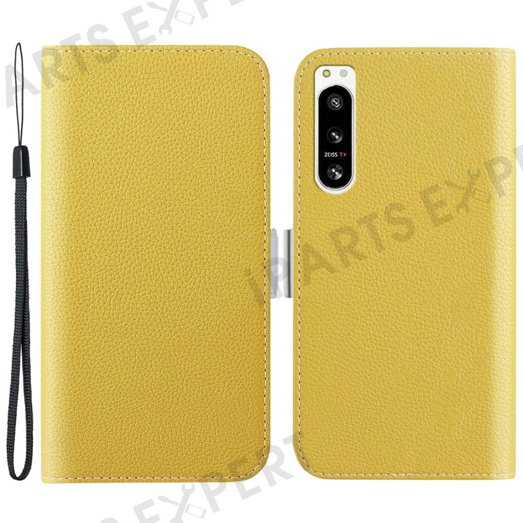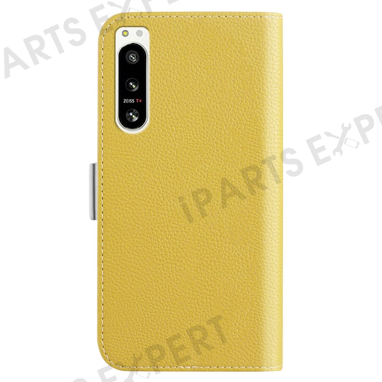 For Sony Xperia 5 IV 5G Cell Phone Cover PU Leather+TPU Litchi Texture Phone Stand Anti-fingerprint Dustproof Wallet Case - Yellow