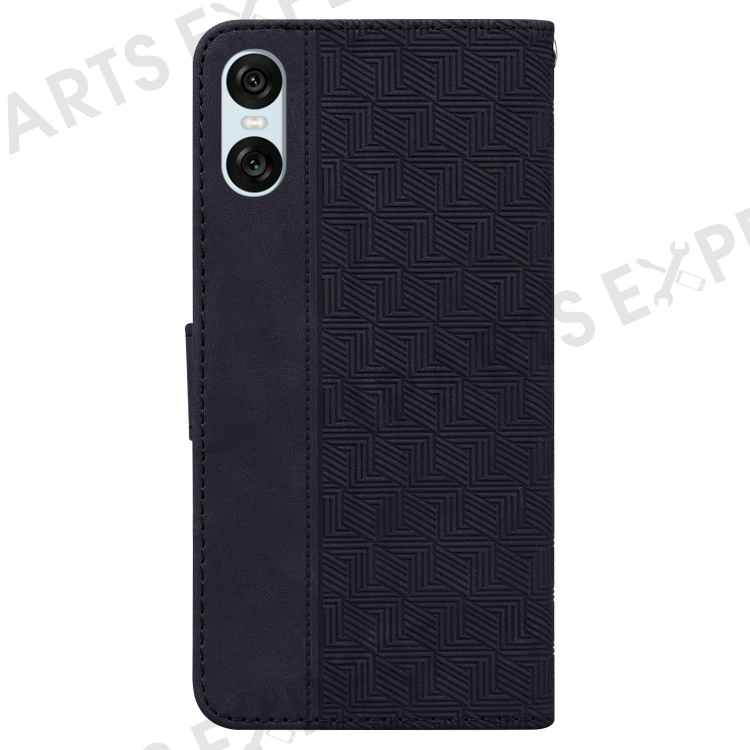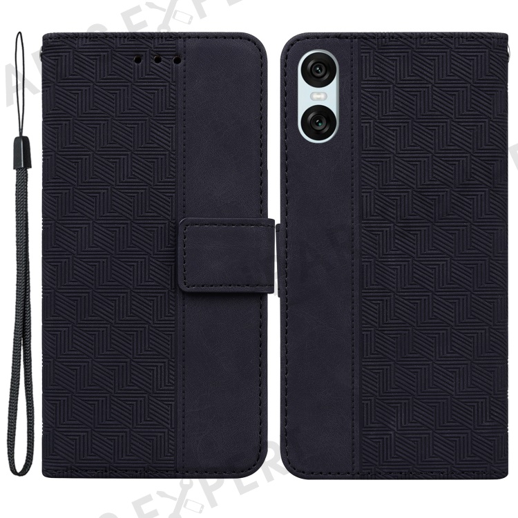 For Sony Xperia 5 VI Case Imprinted Geometry PU Leather Wrist Strap Phone Cover - Black