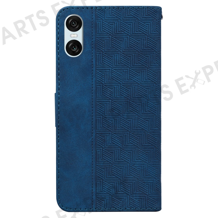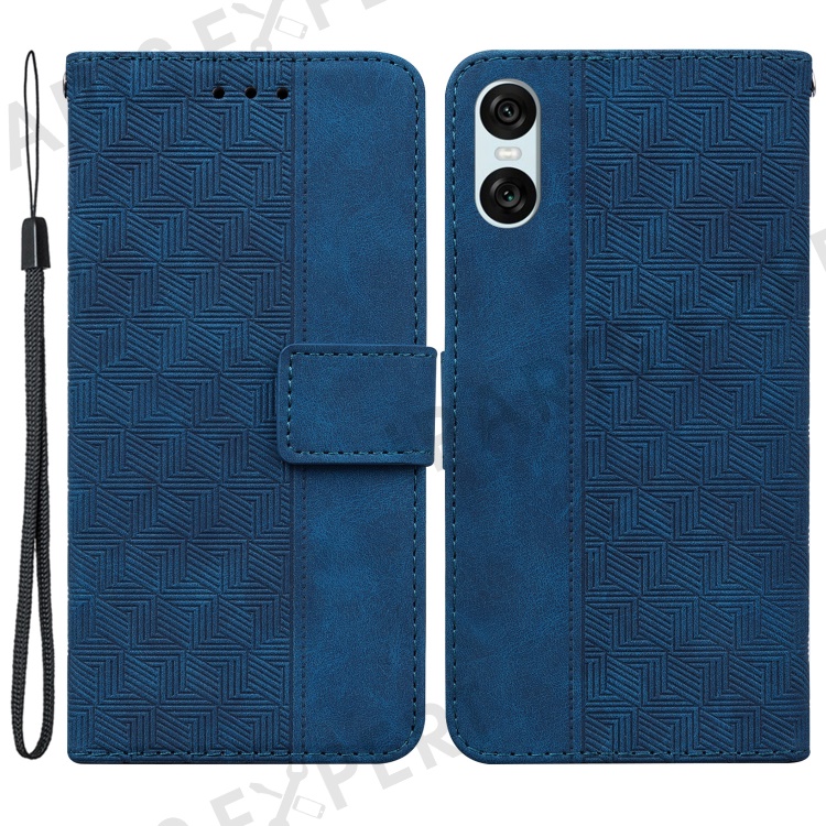 For Sony Xperia 5 VI Case Imprinted Geometry PU Leather Wrist Strap Phone Cover - Blue