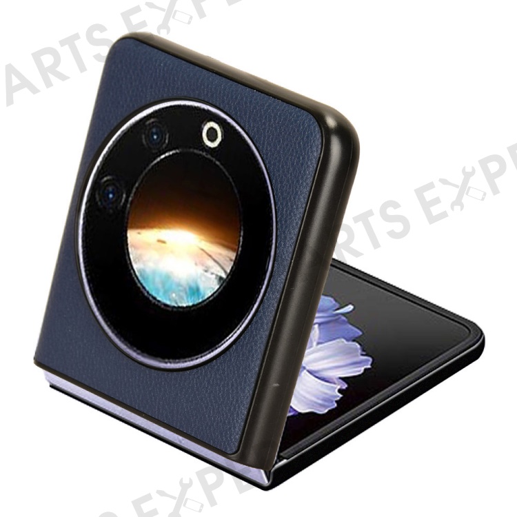 For TECNO Phantom V Flip Case PU Leather+PC Phone Cover with Card Holder - Blue