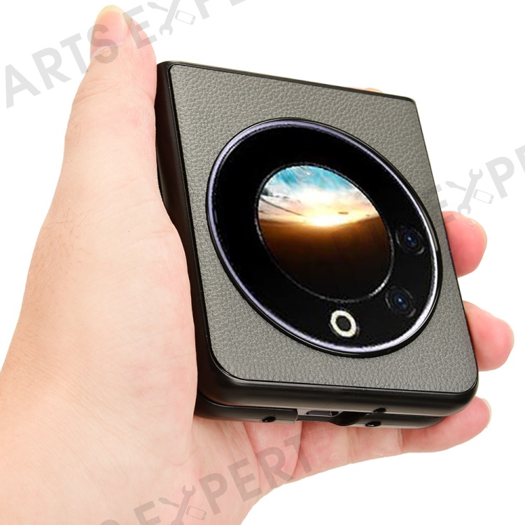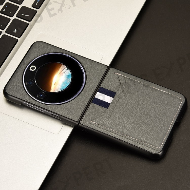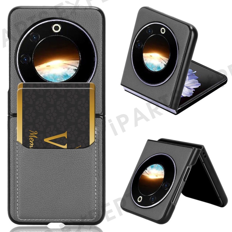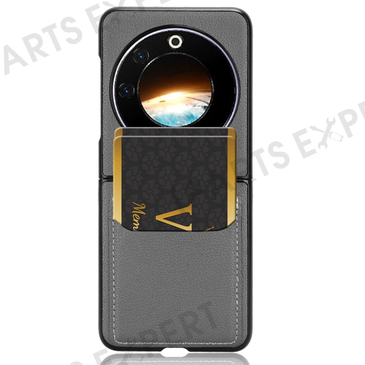 For TECNO Phantom V Flip Case PU Leather+PC Phone Cover with Card Holder - Grey