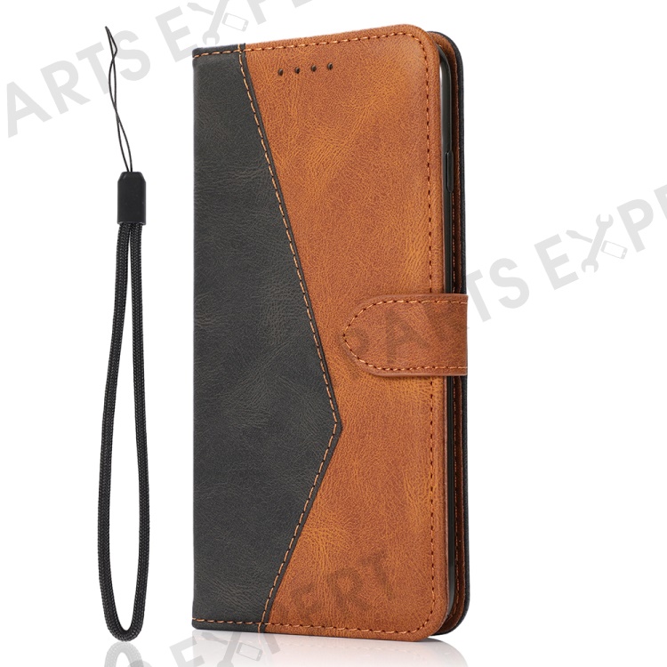 For TECNO Spark Go 2023 4G Splicing PU Leather Phone Case Anti-Drop Stand Wallet Cover - Black+Brown