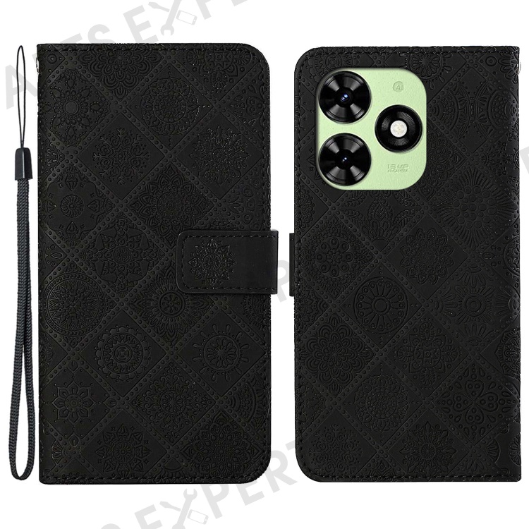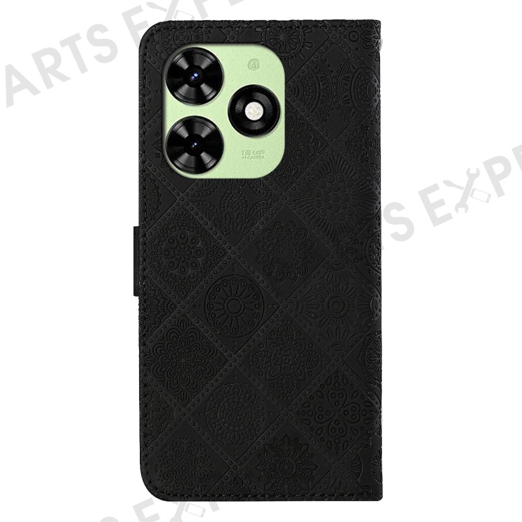 For TECNO Spark Go 2024 4G / Spark 20 / 20C / Pop 8 / Infinix Smart 8 4G / 8 Plus / 8 Pro 4G Case Leather Case Ethnic Style Wallet Phone Cover with Strap - Black